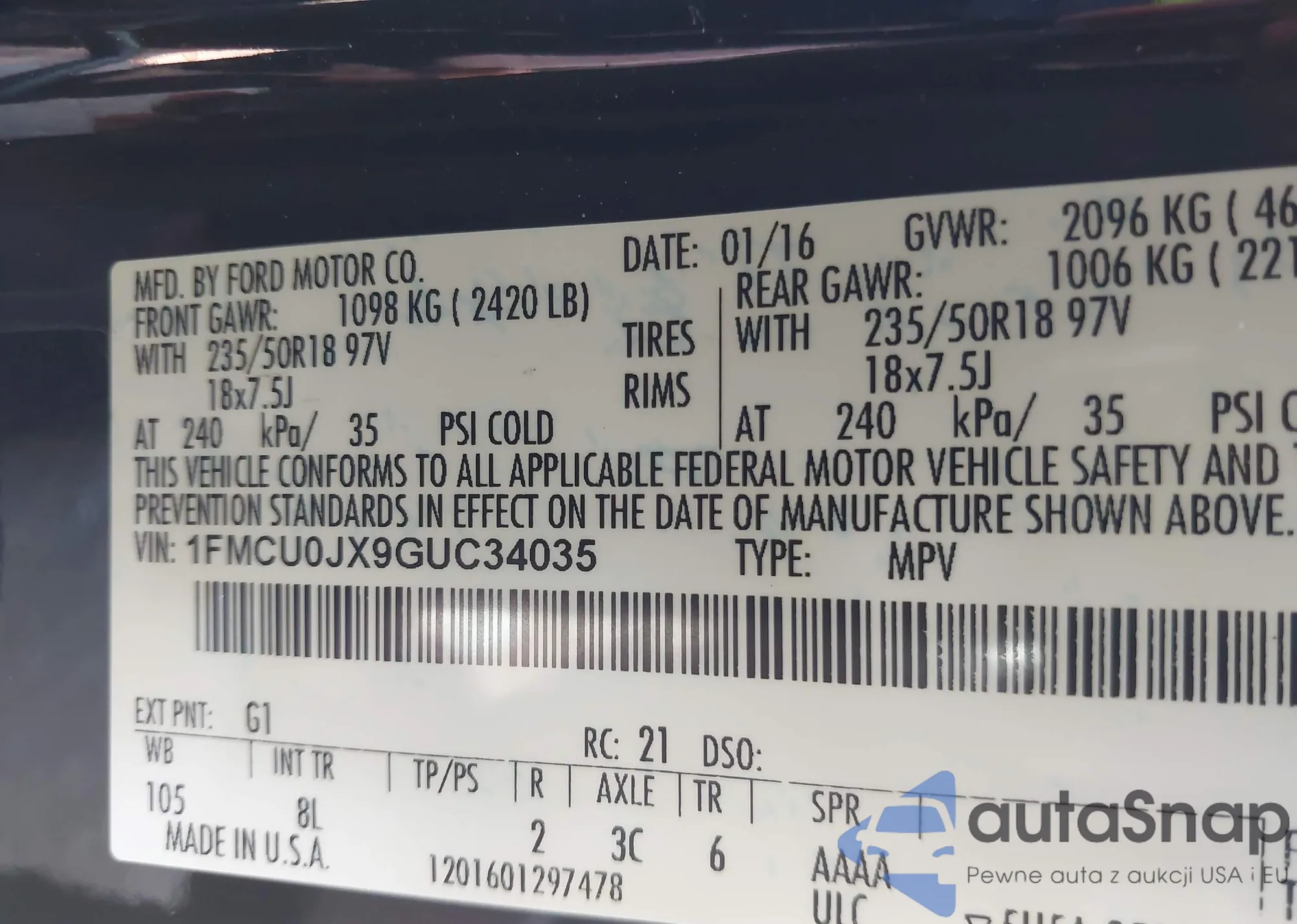 • VIN 1FMCU0JX9GUC34035