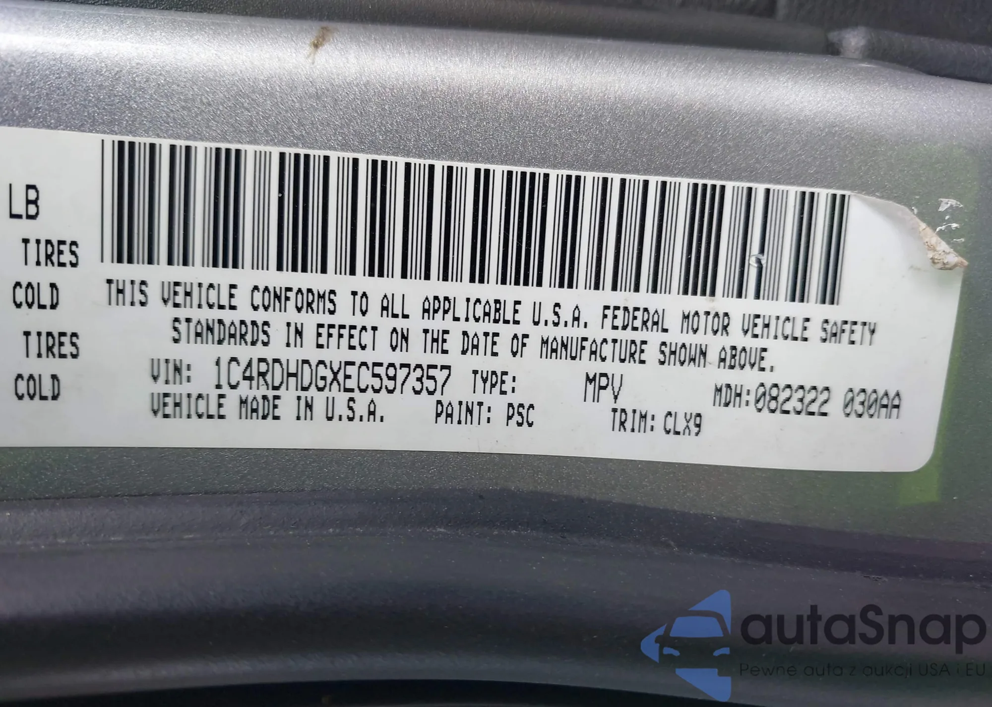 LOT: 42810265 VIN: 1C4RDHDGXEC597357