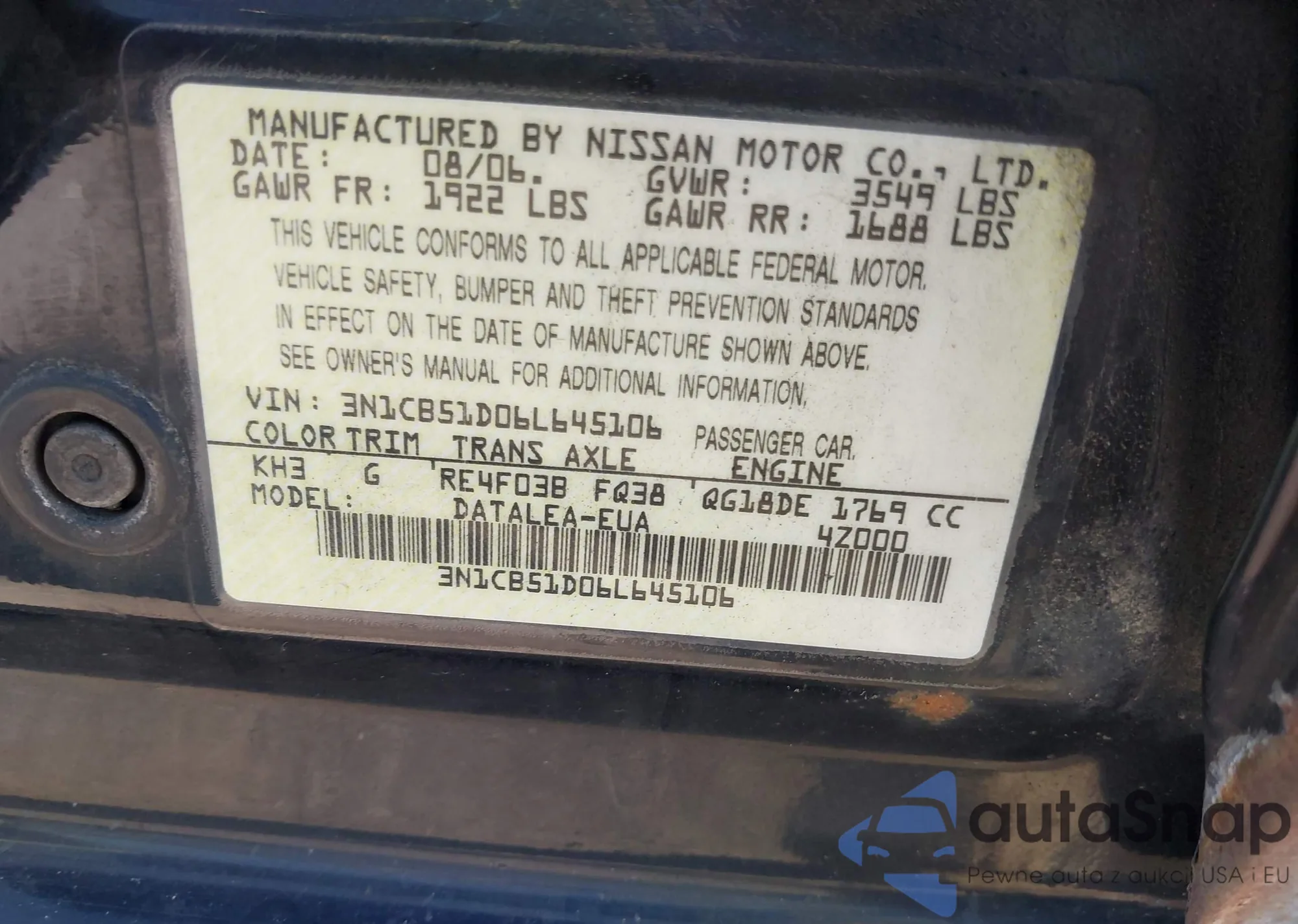 • VIN 3N1CB51D06L645106