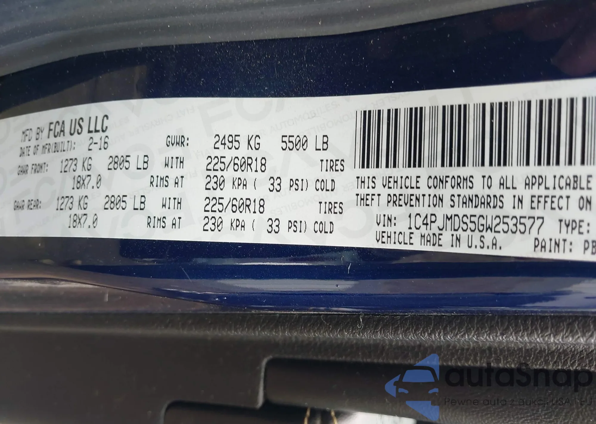 LOT: 42834488 VIN: 1C4PJMDS5GW253577