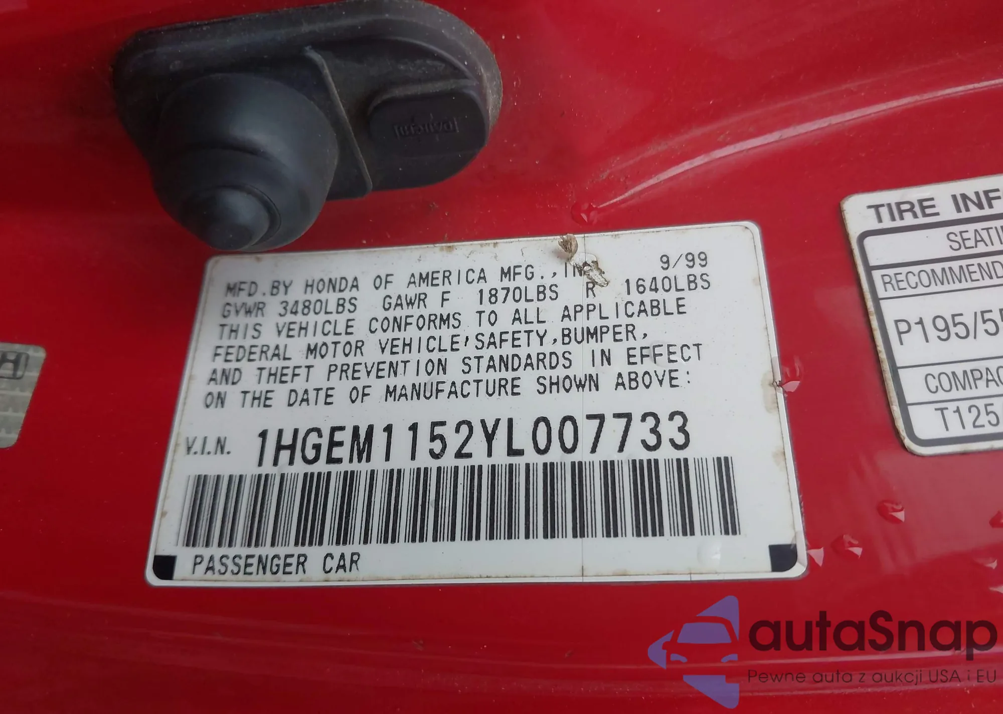 LOT: 42818977 VIN: 1HGEM1152YL007733