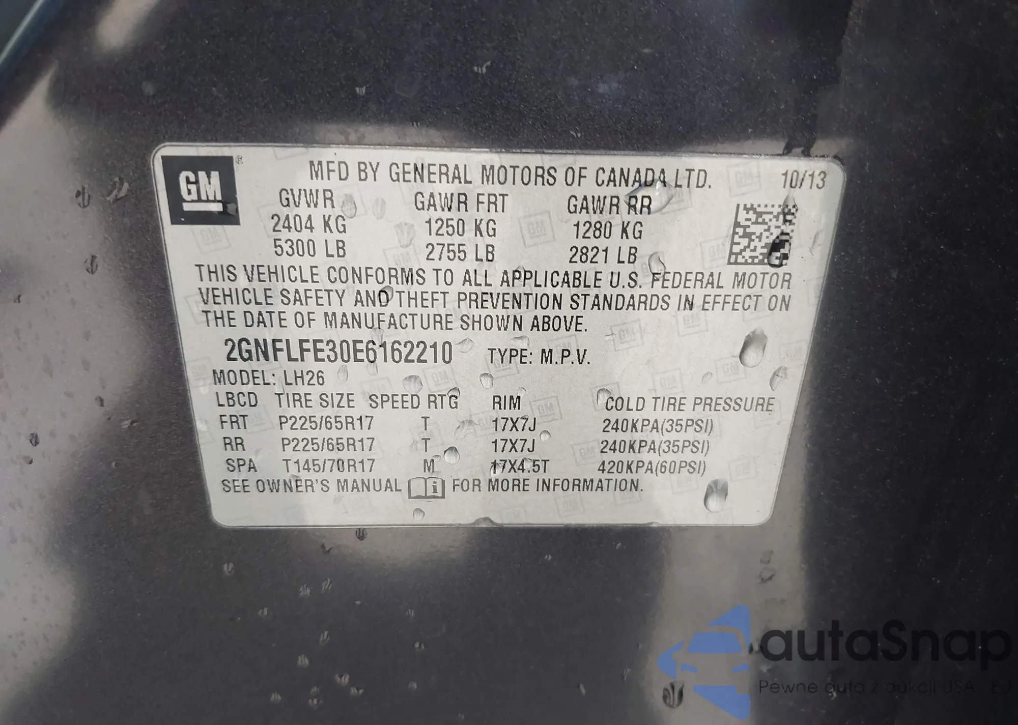 LOT: 42832560 VIN: 2GNFLFE30E6162210