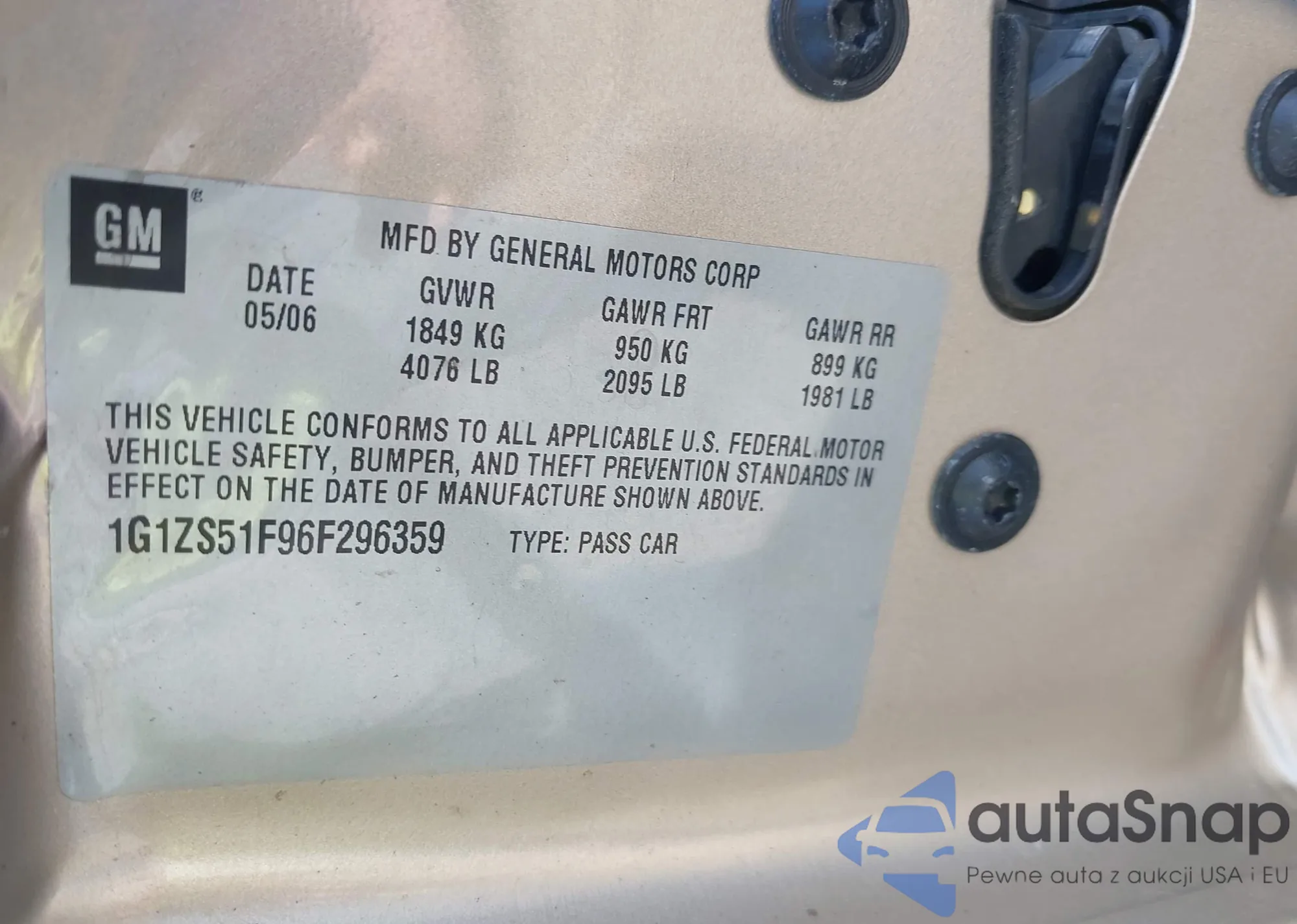 • VIN 1G1ZS51F96F296359