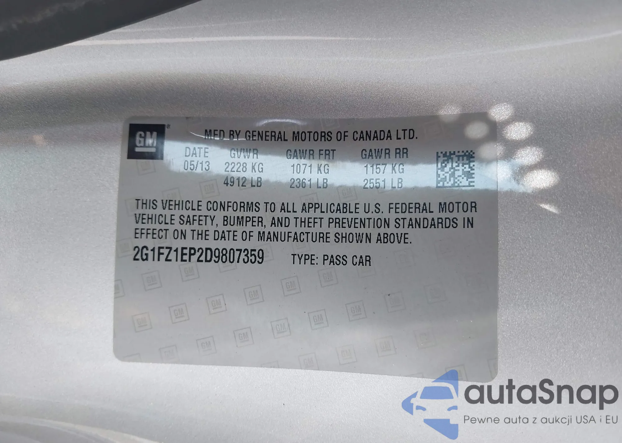 • VIN 2G1FZ1EP2D9807359