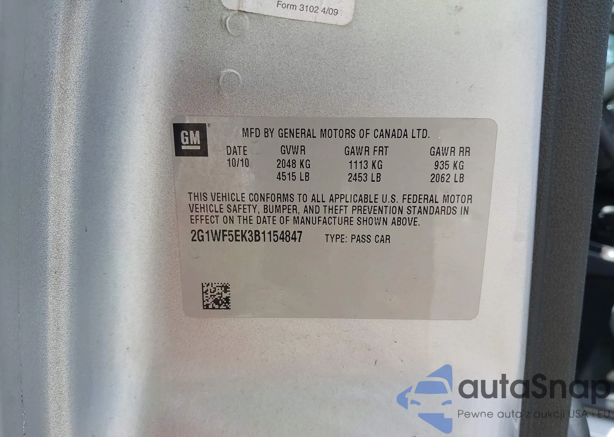 • VIN 2G1WF5EK3B1154847
