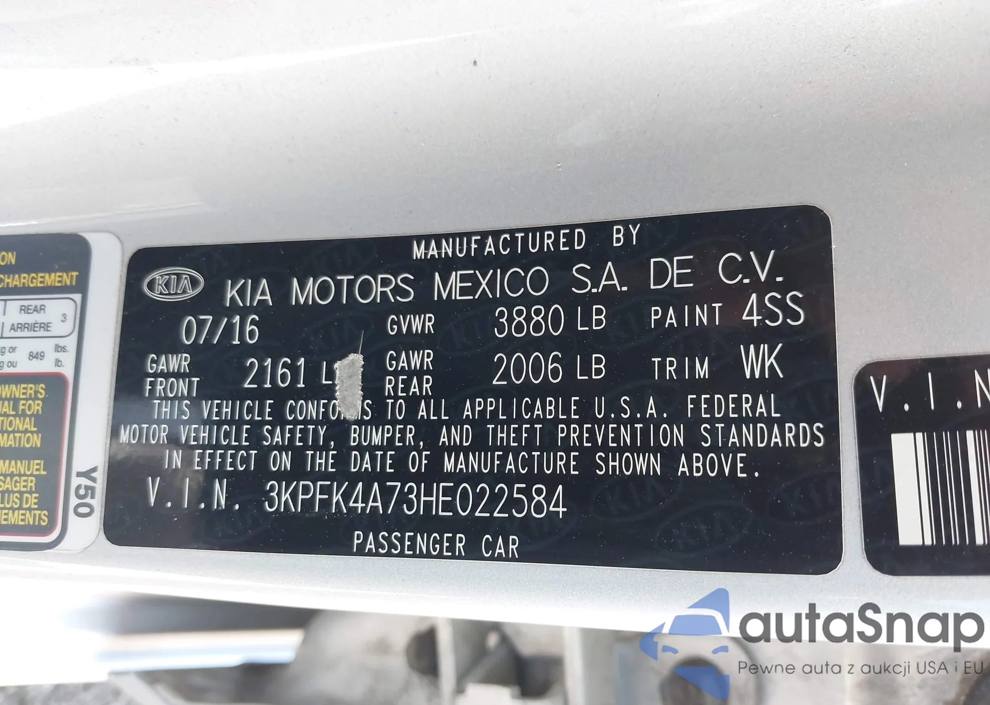 • VIN 3KPFK4A73HE022584
