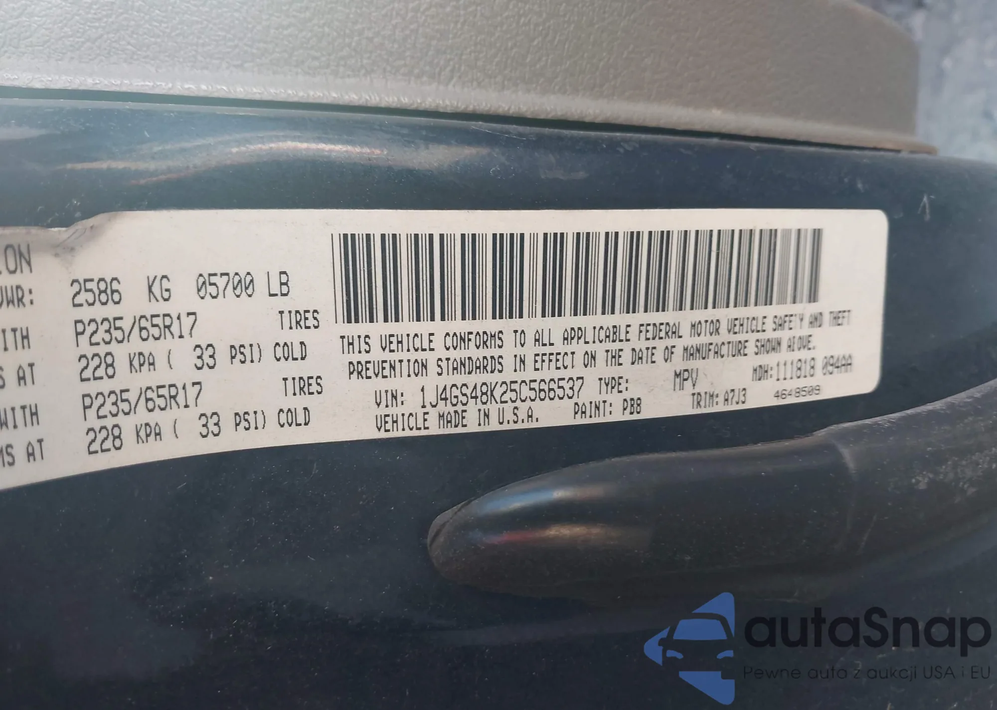 LOT: 42844081 VIN: 1J4GS48K25C566537