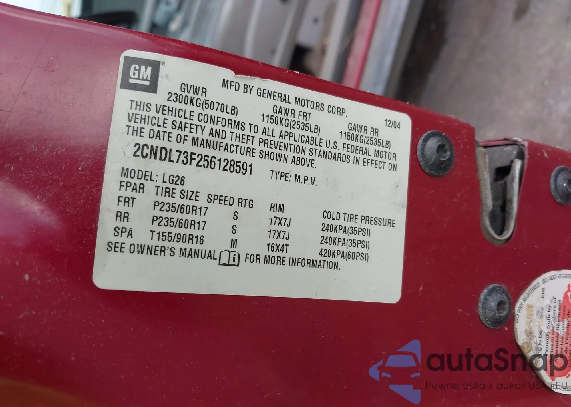 • VIN 2GKALNEK5G6104668