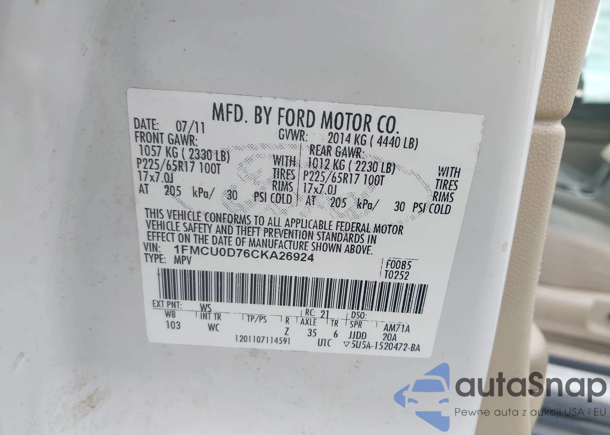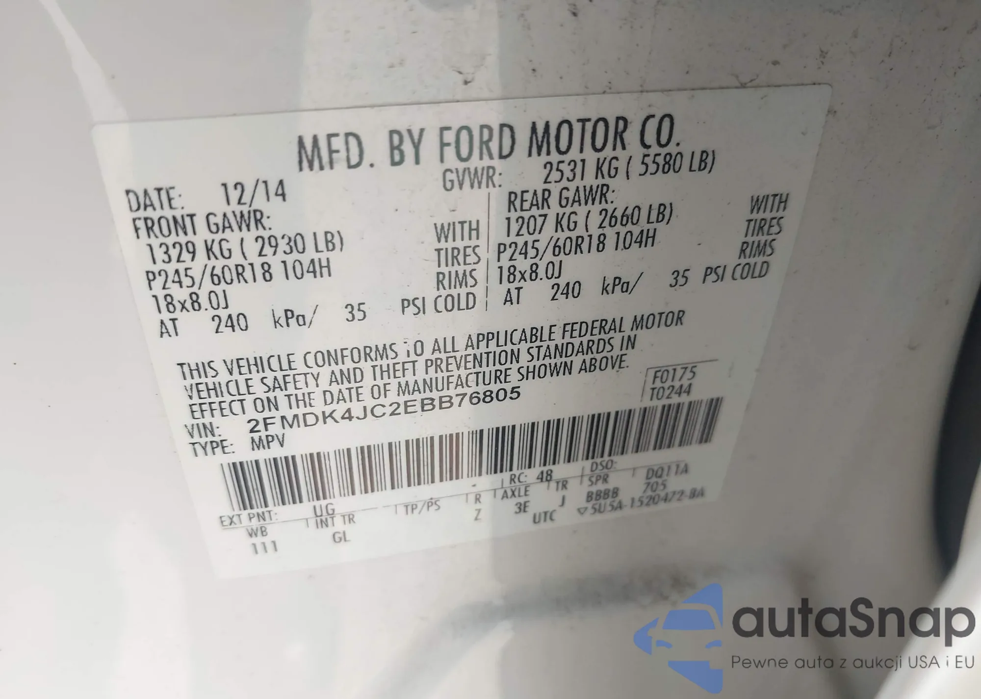 LOT: 42766506 VIN: 2FMDK4JC2EBB76805
