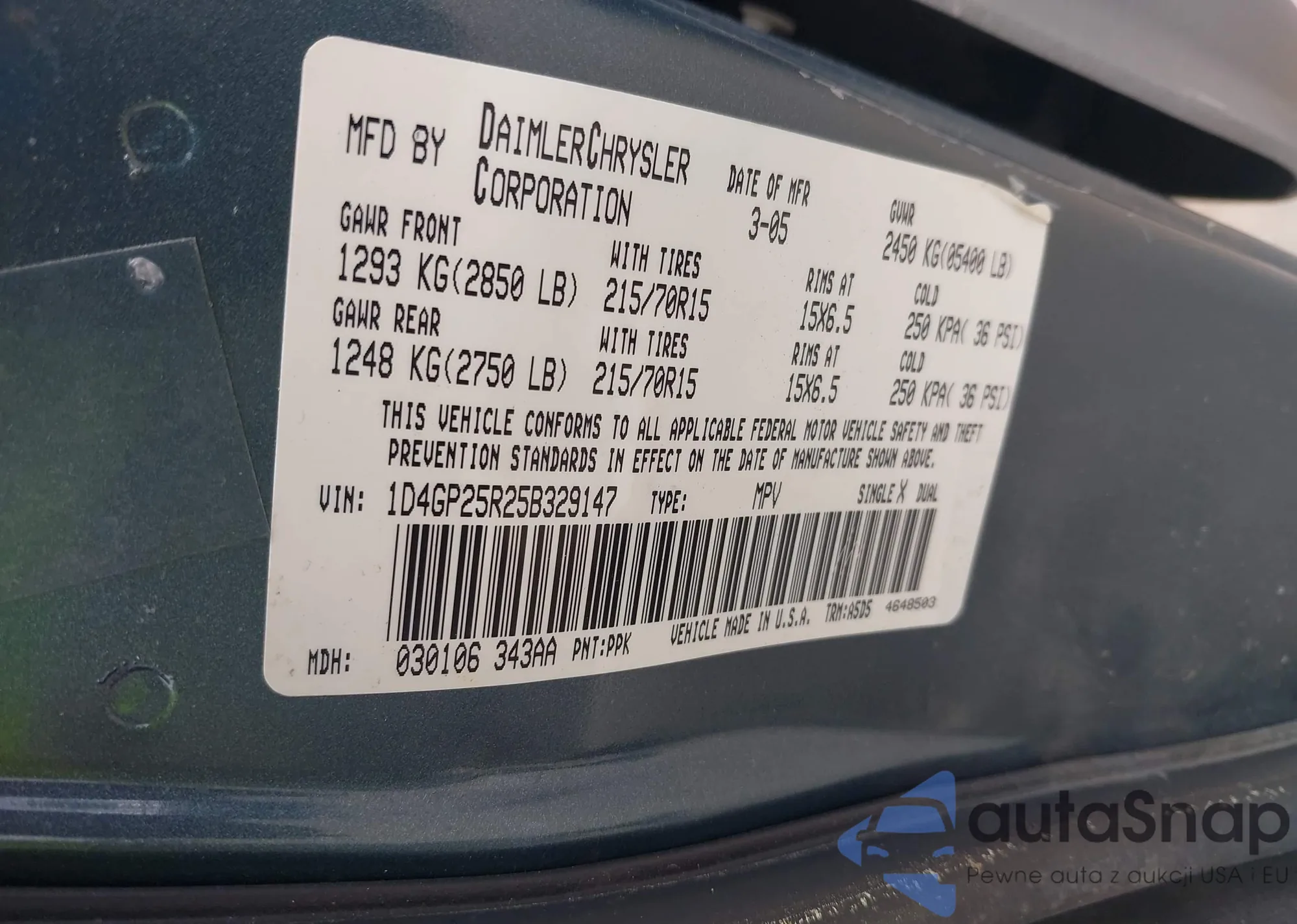 LOT: 42751463 VIN: 1D4GP25R25B329147