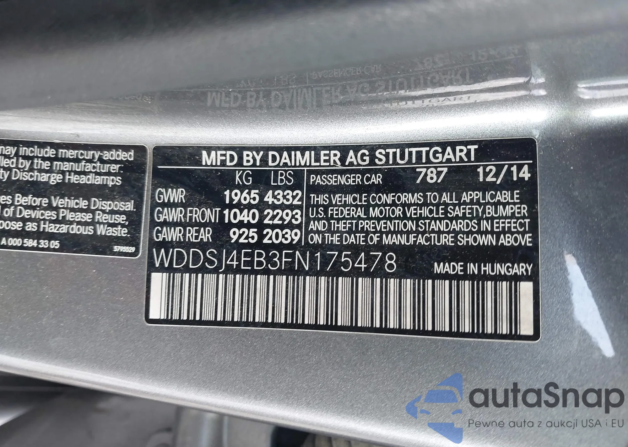 • VIN WDDSJ4EB3FN175478