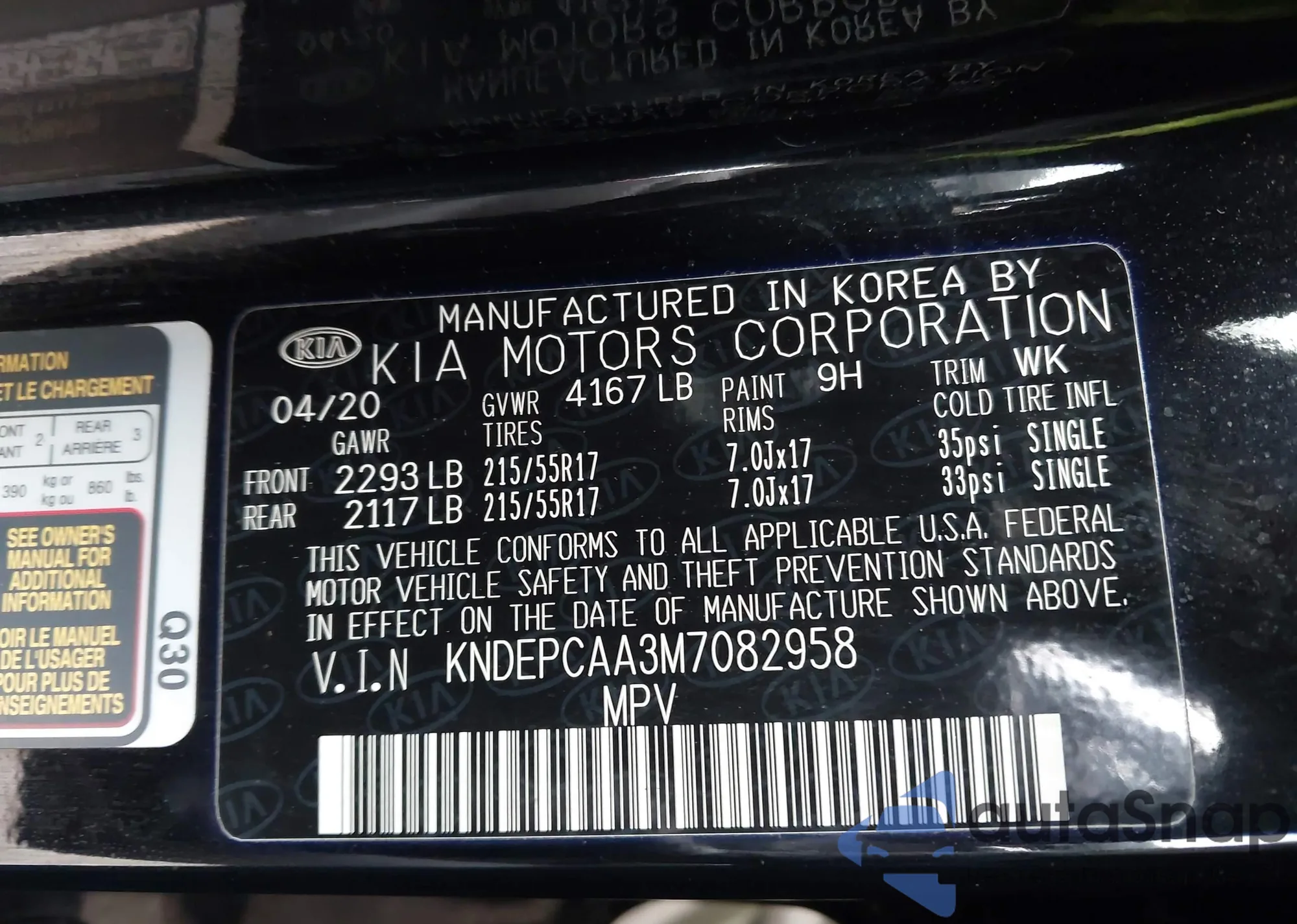 • VIN KNDEPCAA3M7082958