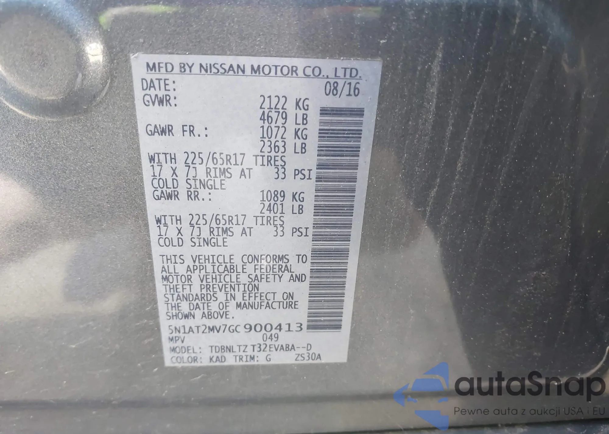 • VIN 5N1AT2MV7GC900413