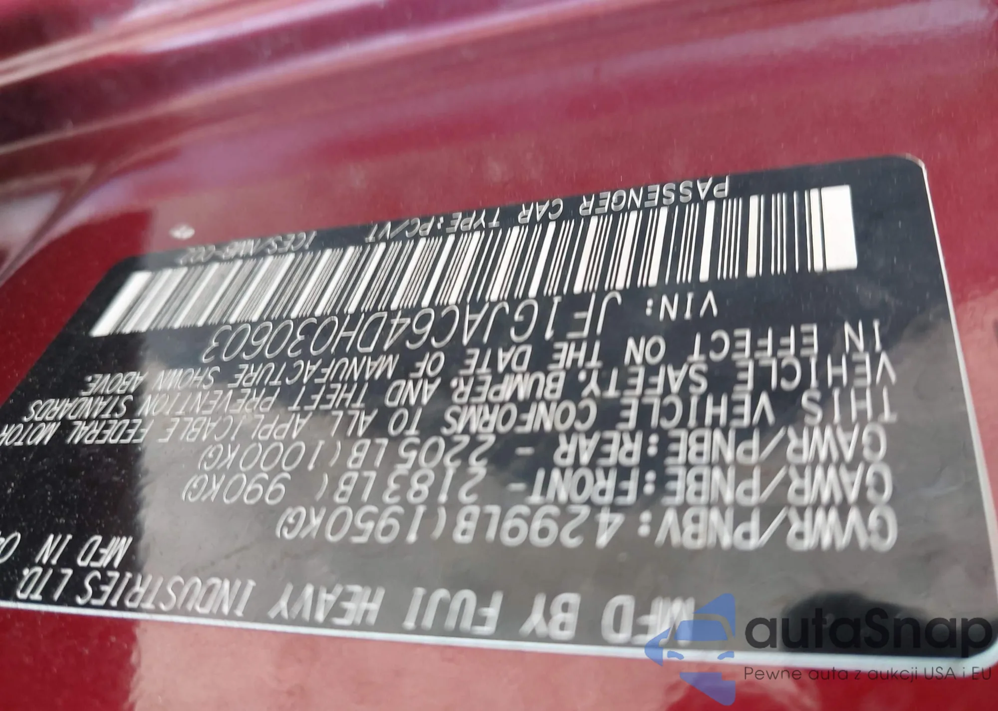 • VIN 4S4BRDKC3C2227166