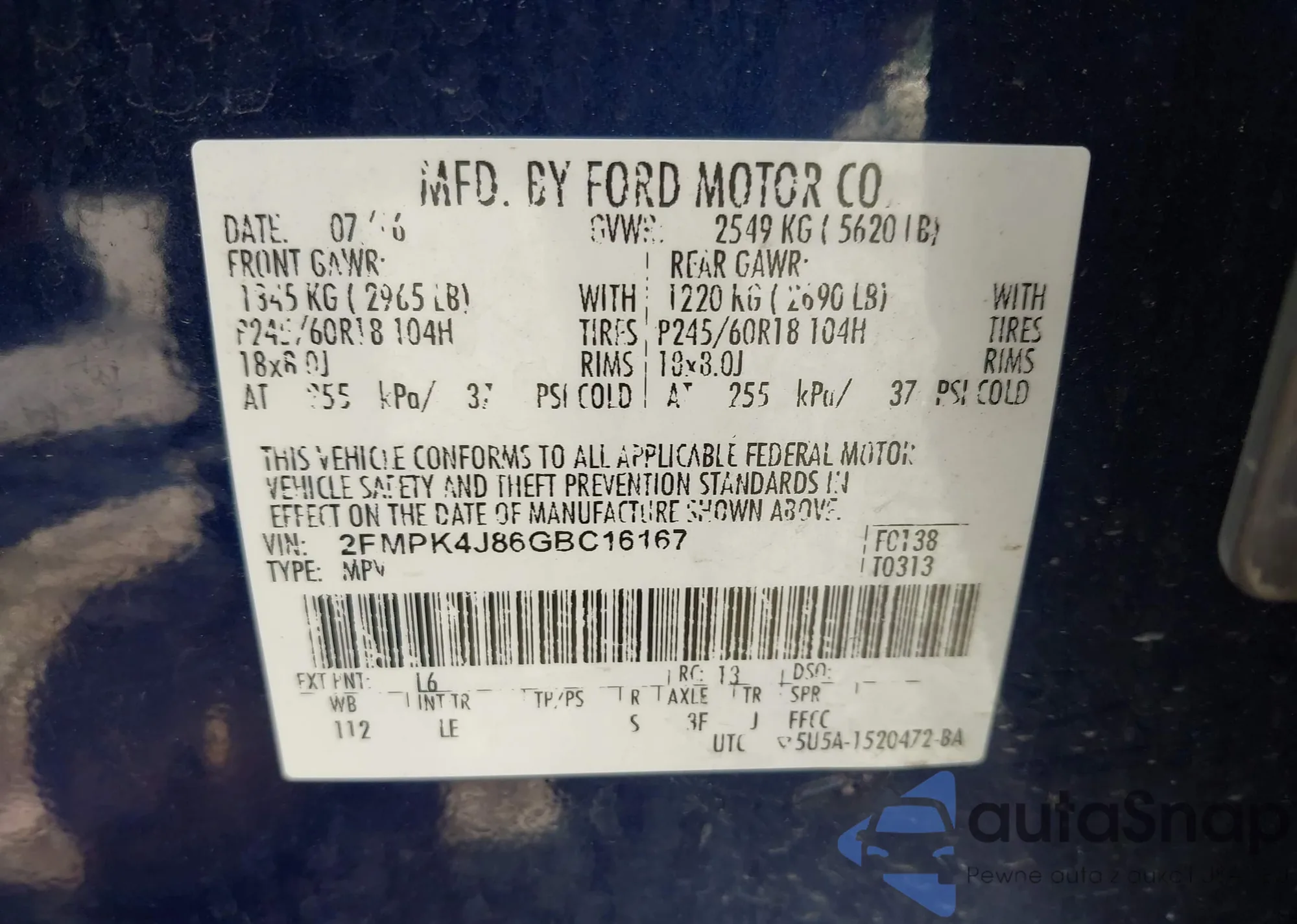 • VIN 2FMPK4J86GBC16167