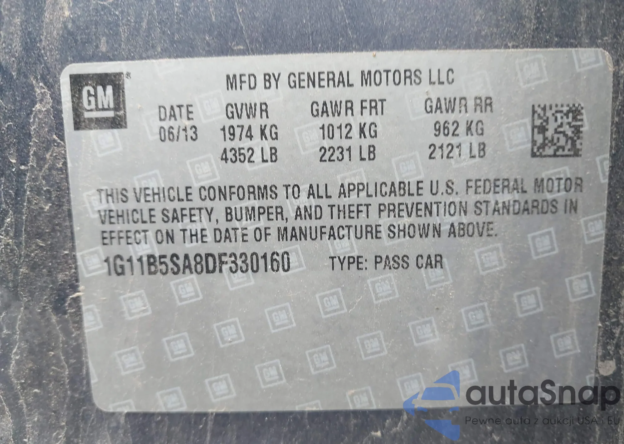 LOT: 42809615 VIN: 1G11B5SA8DF330160