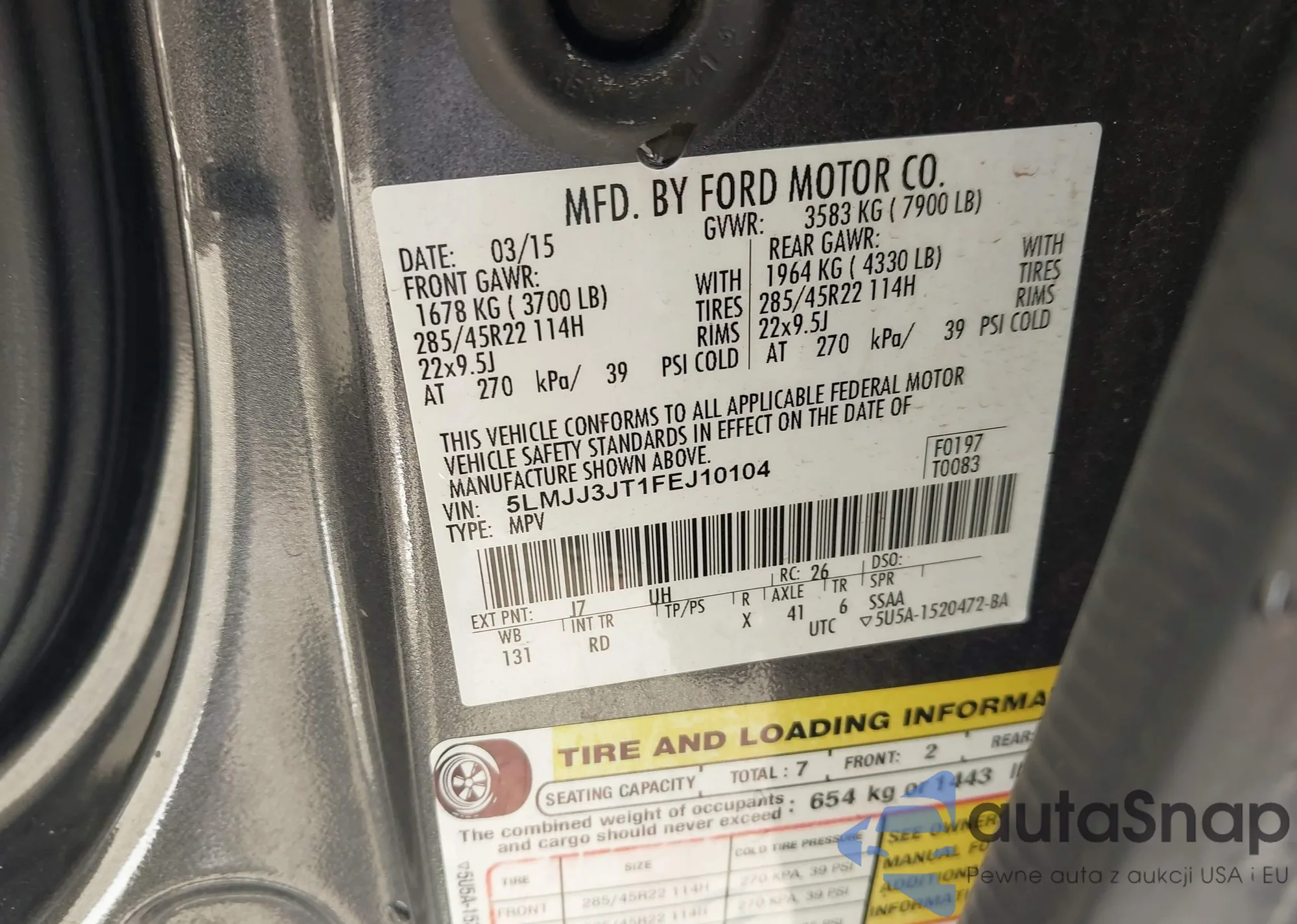 LOT: 42832364 VIN: 5LMJJ3JT1FEJ10104