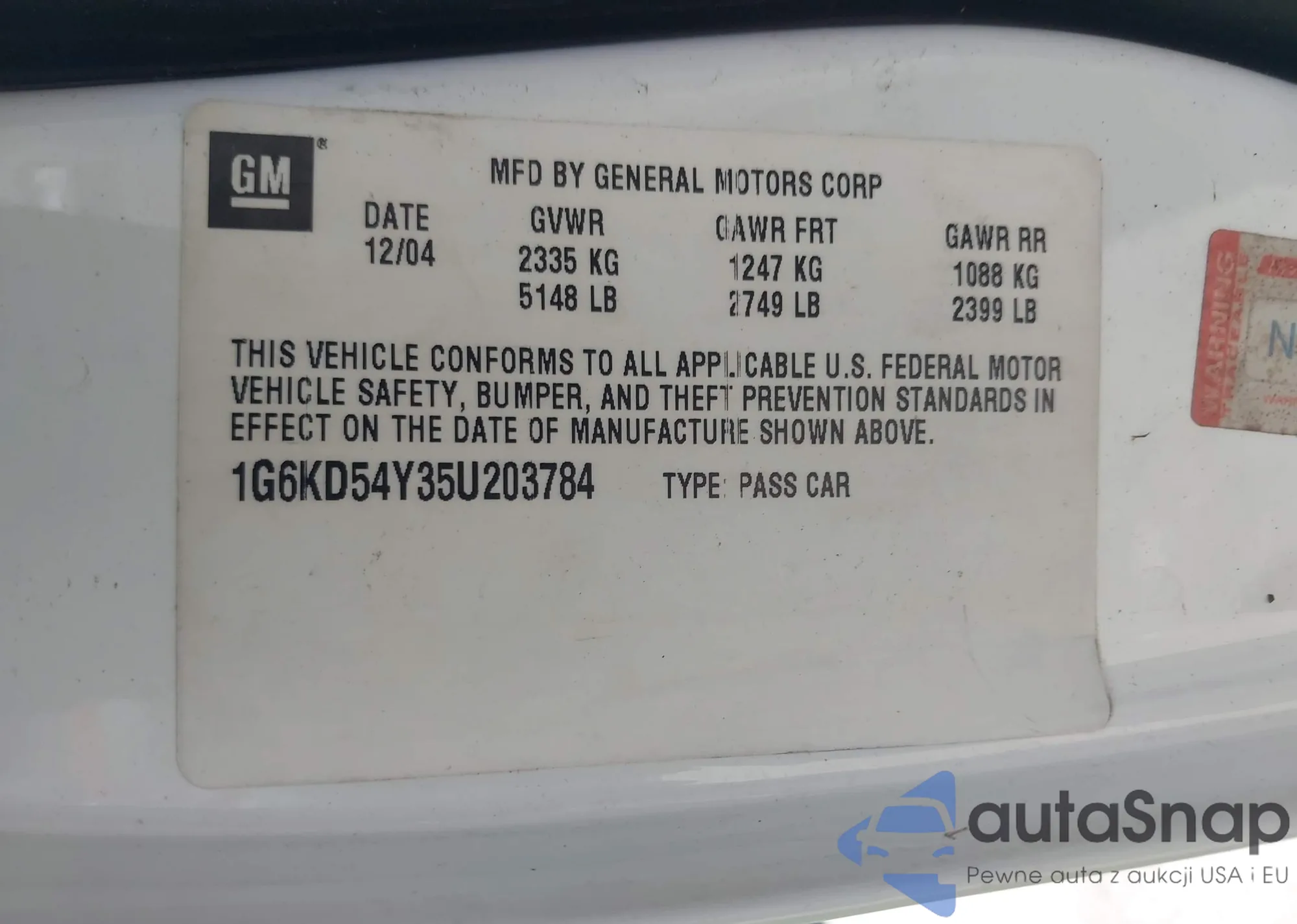 • VIN 1G6KD54Y35U203784