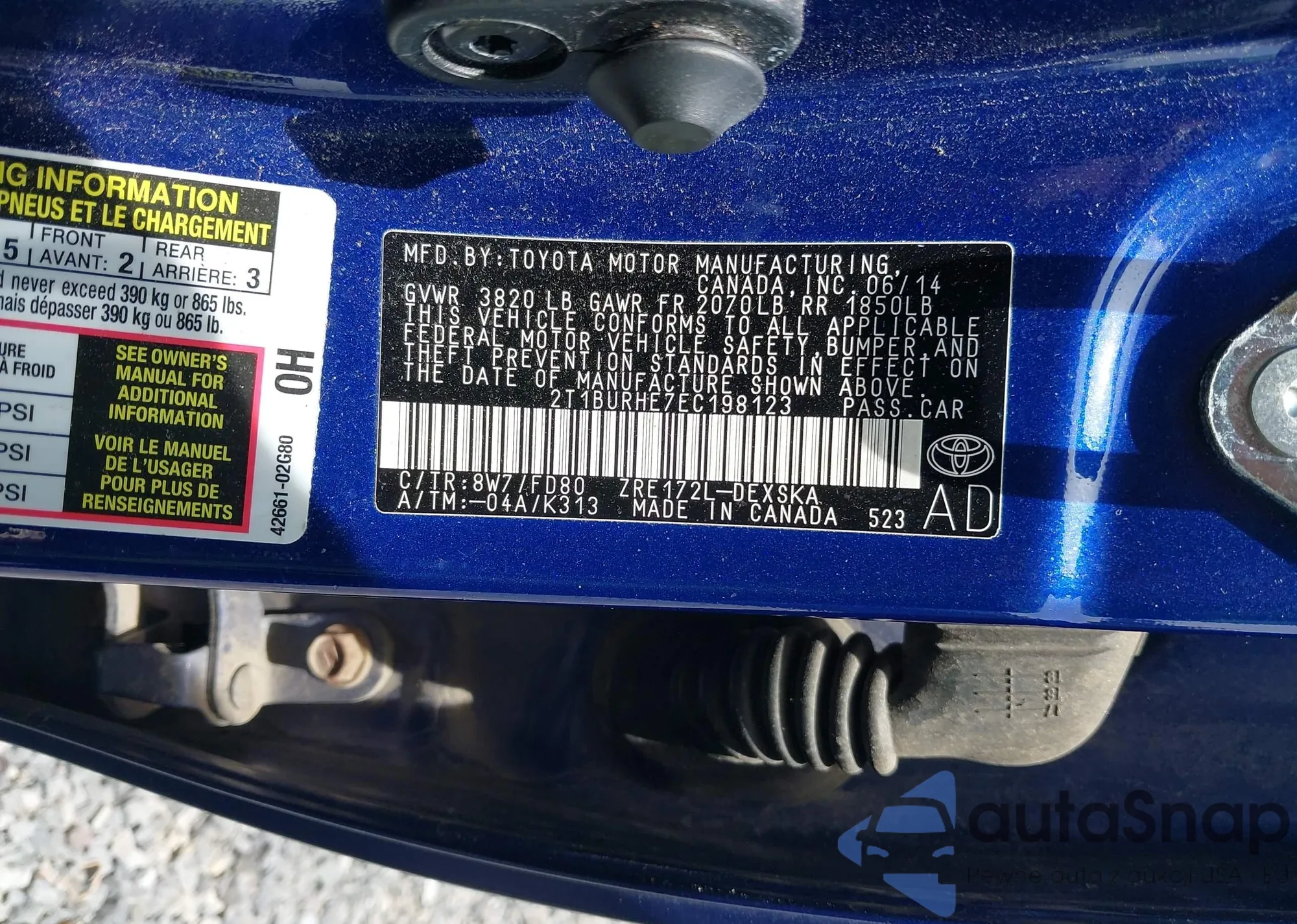 LOT: 42439855 VIN: 2T1BURHE7EC198123