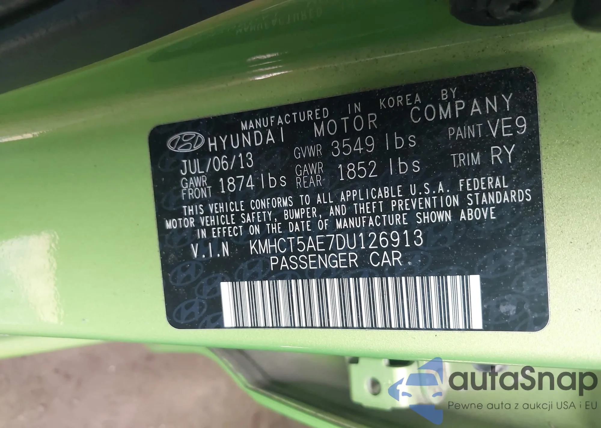 • VIN KMHCT5AE7DU126913