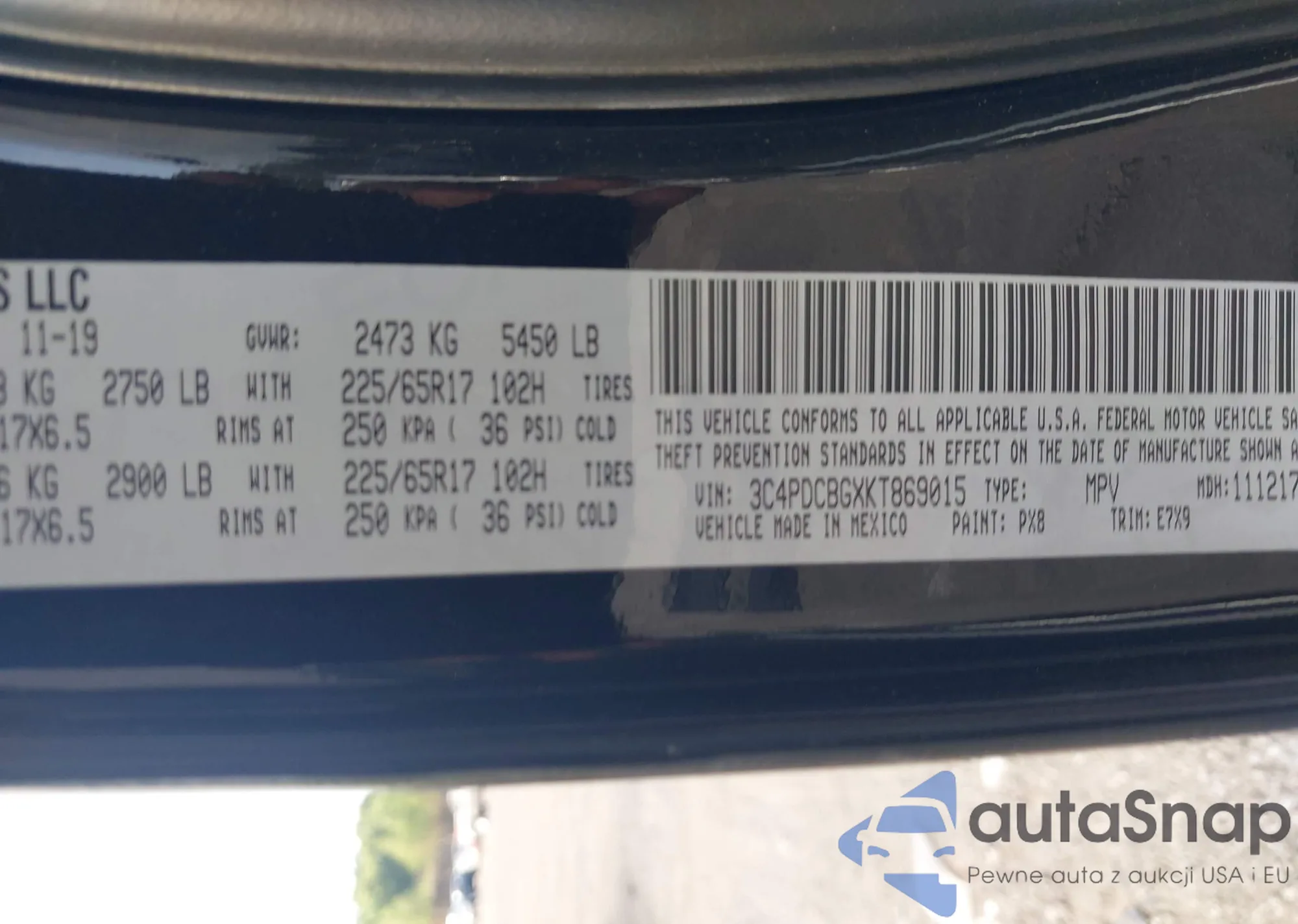 • VIN WBA4W9C50JAC09102