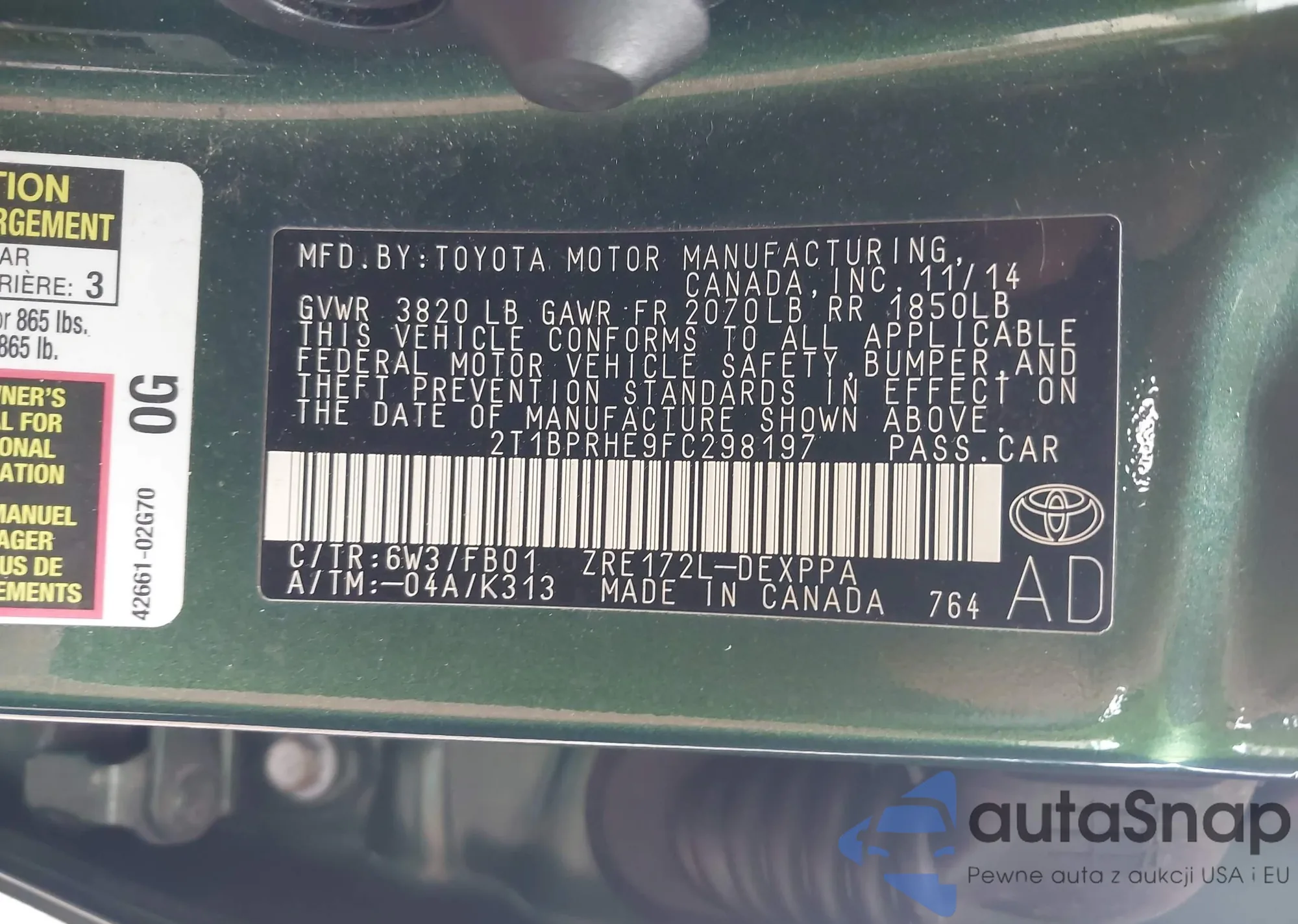 LOT: 42719873 VIN: 2T1BPRHE9FC298197