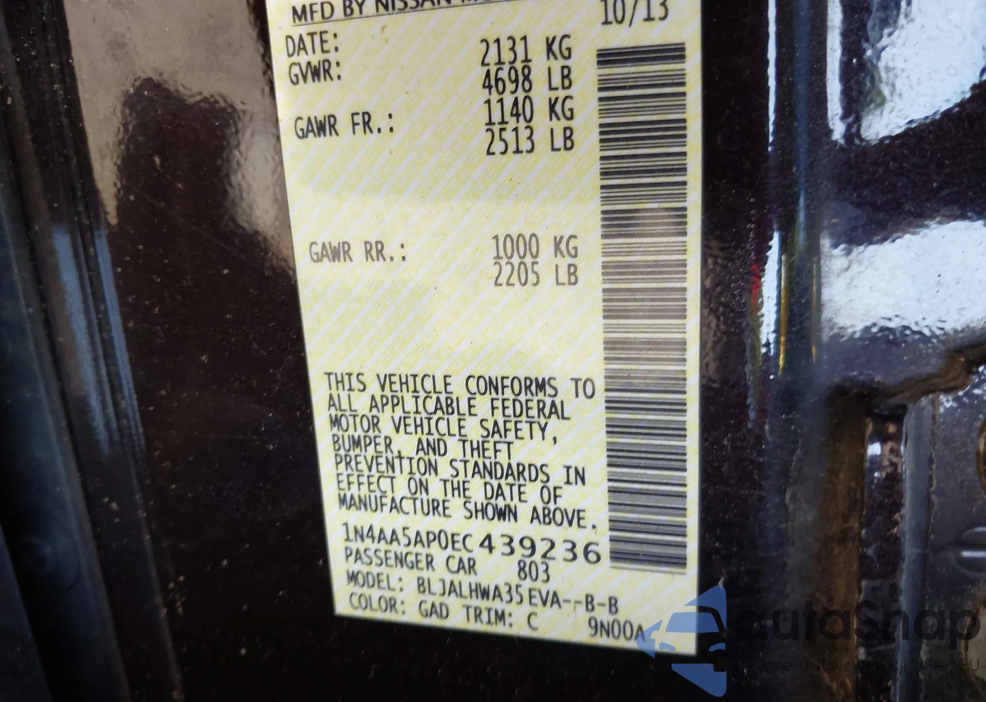 • VIN 1N4AA5AP0EC439236