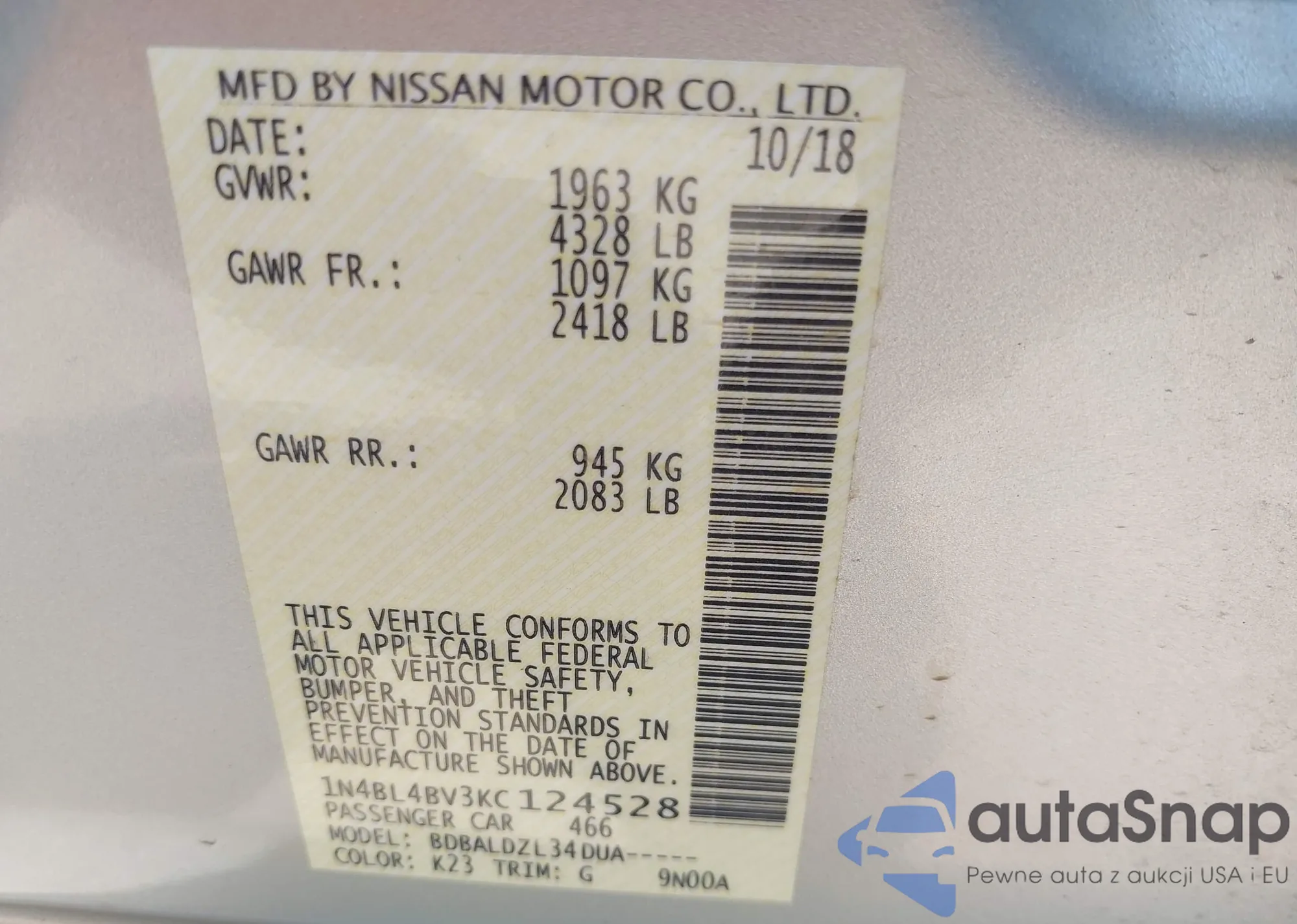 LOT: 42503967 VIN: 3KPC24A39JE024104