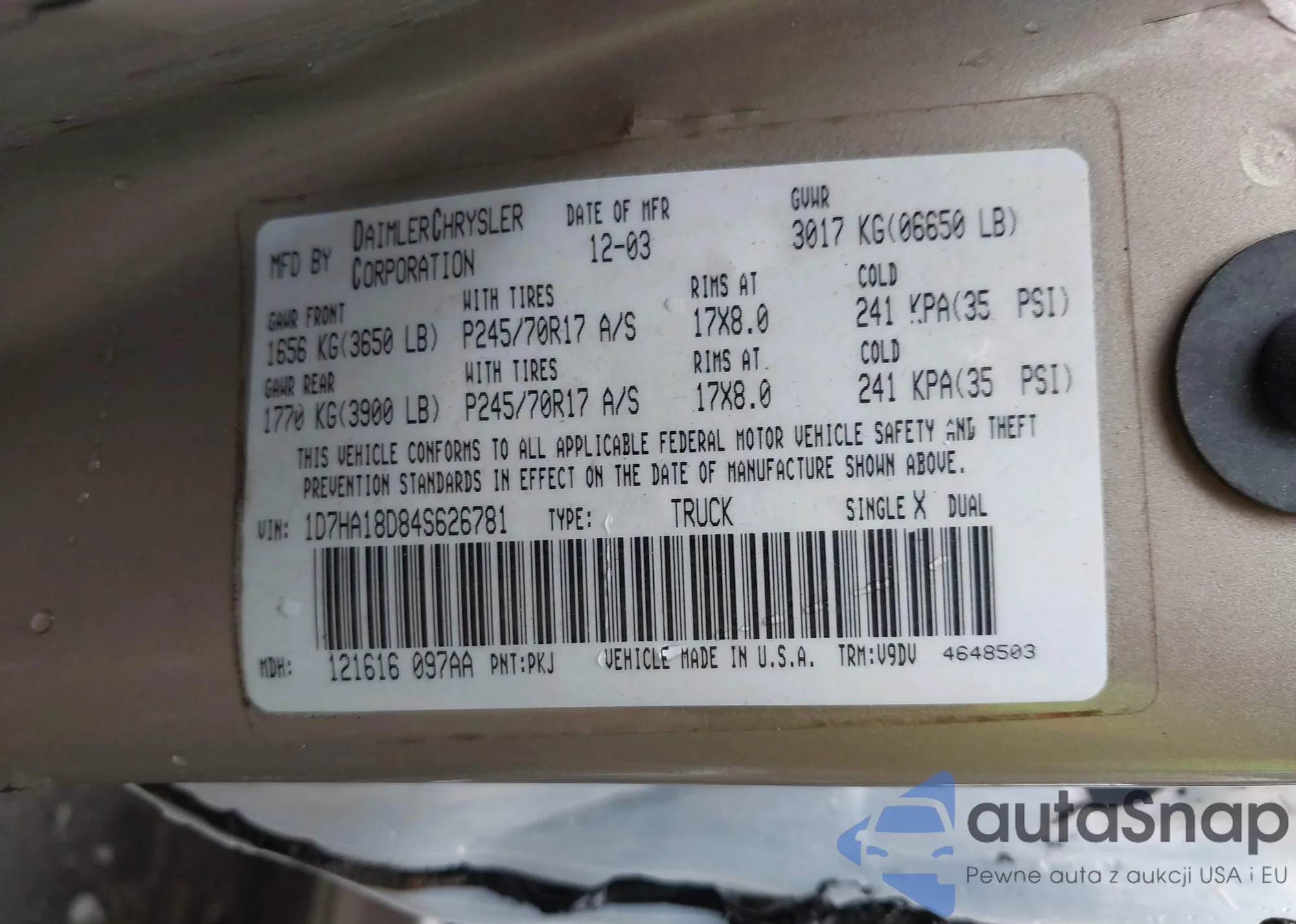 LOT: 42707774 VIN: 1D7HA18D84S626781