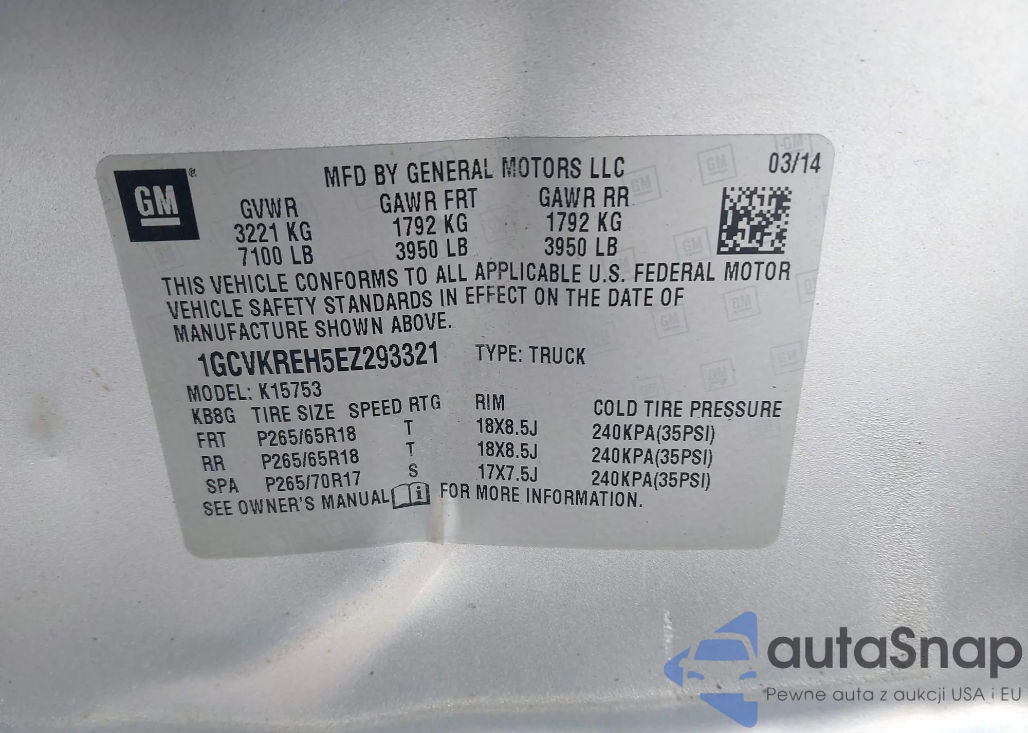 • VIN 1GCVKREH5EZ293321