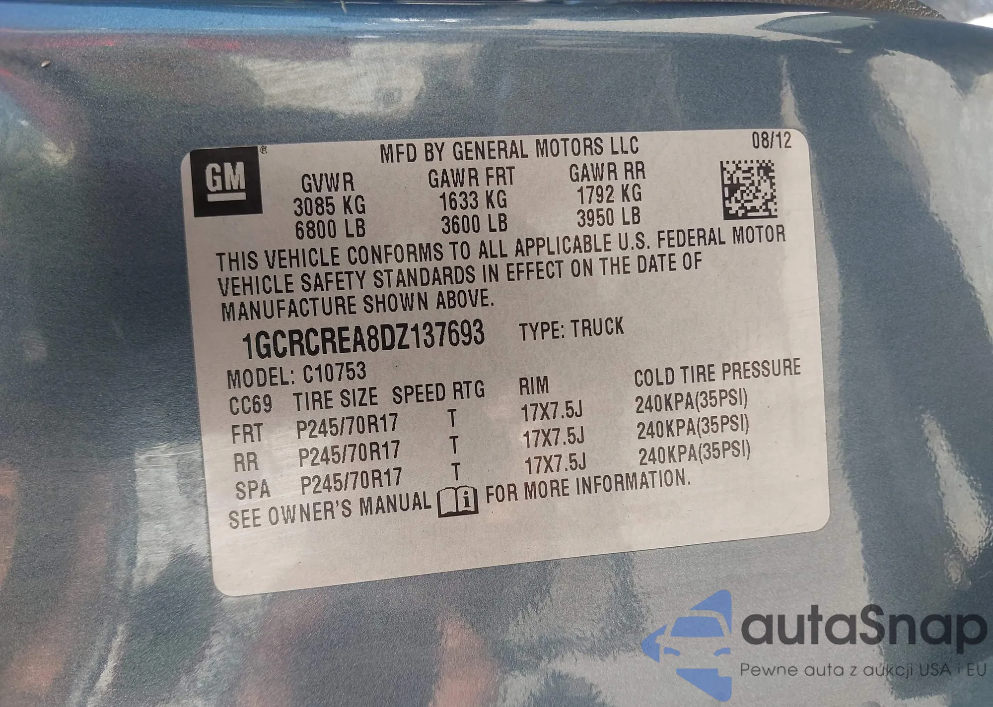 • VIN 1GCRCREA8DZ137693
