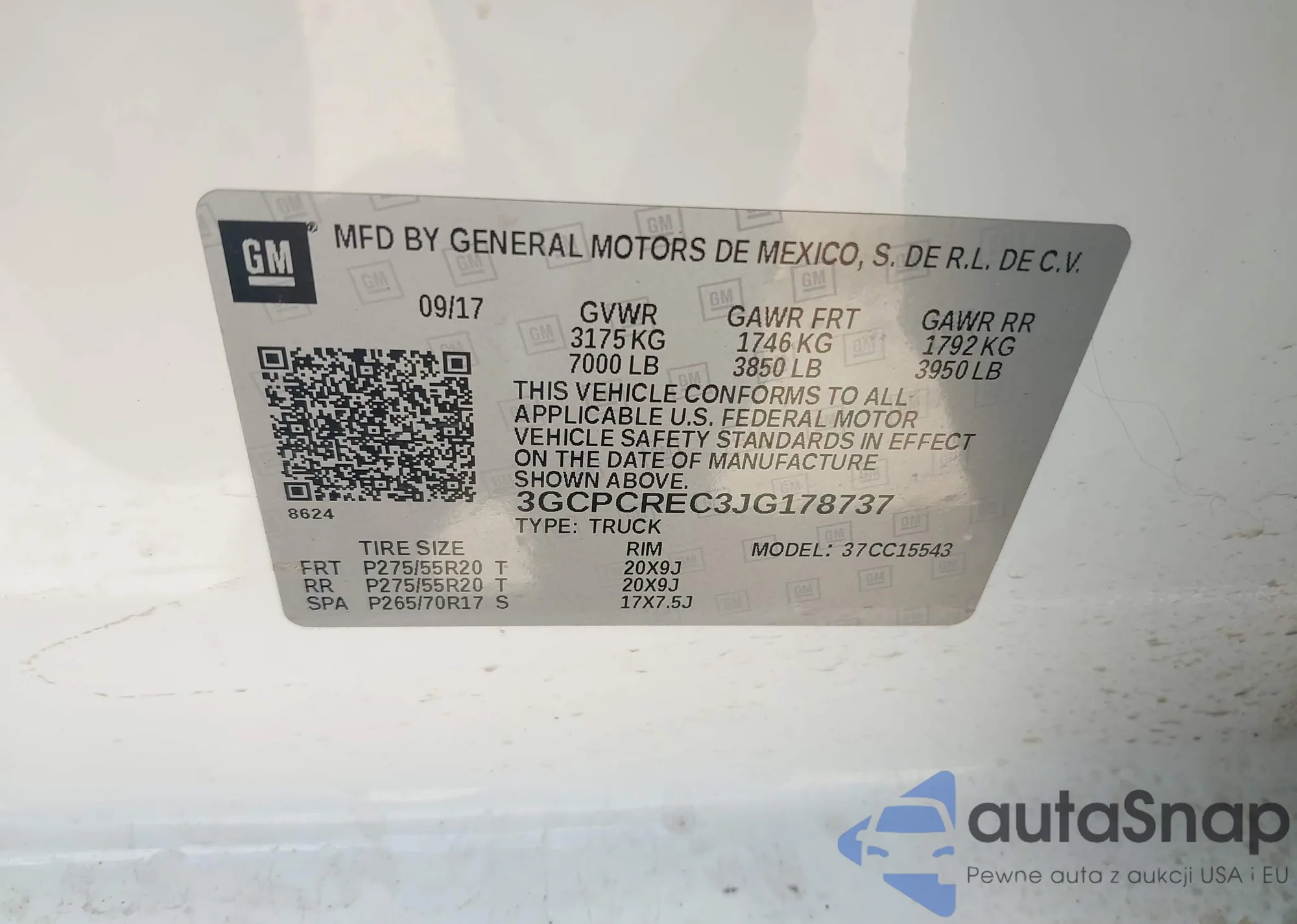 • VIN 3GCPCREC3JG178737