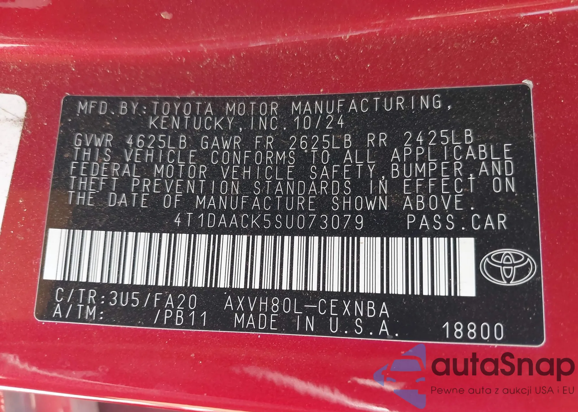 • VIN 4T1DAACK5SU073079