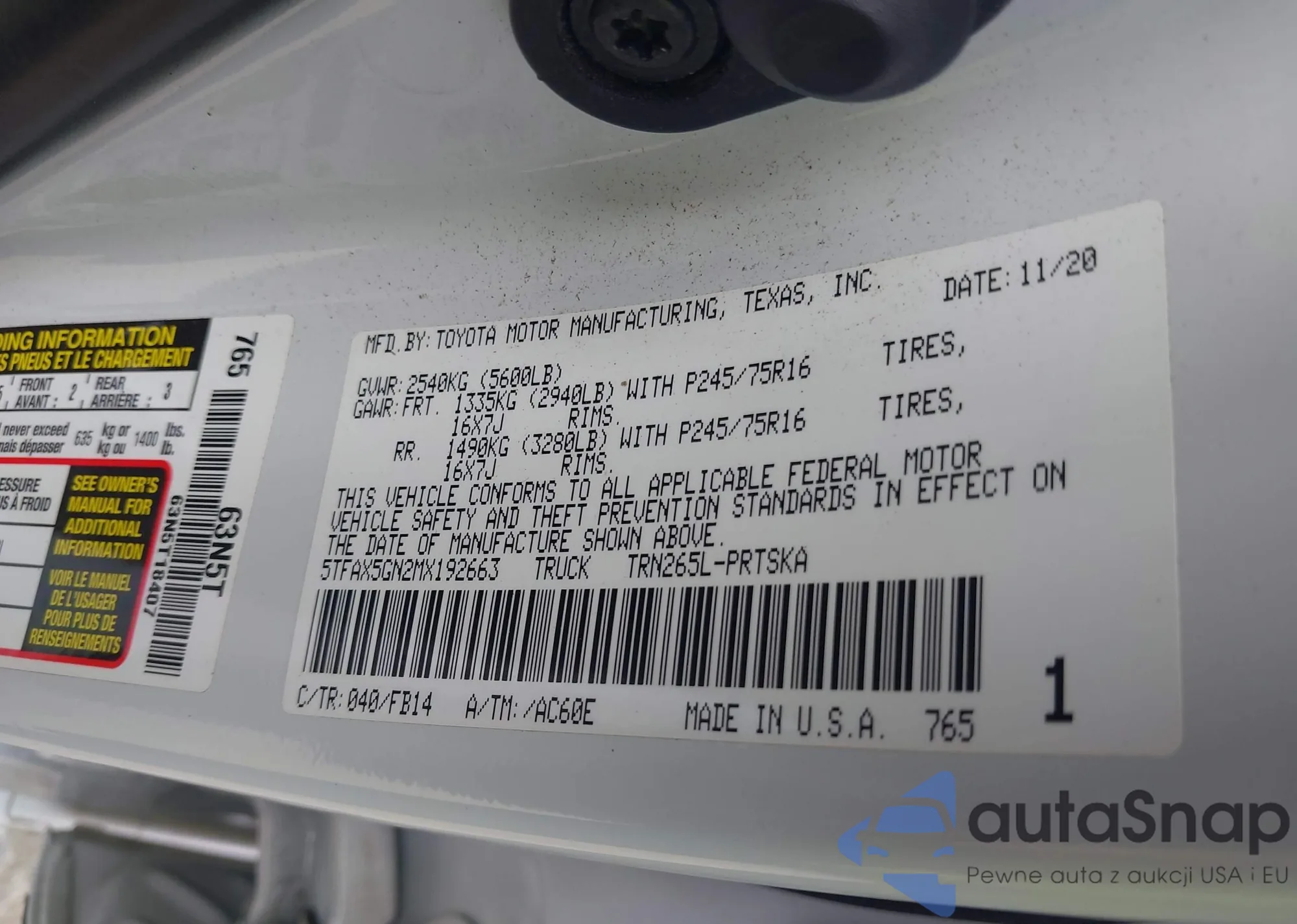 • VIN 5TFAX5GN2MX192663