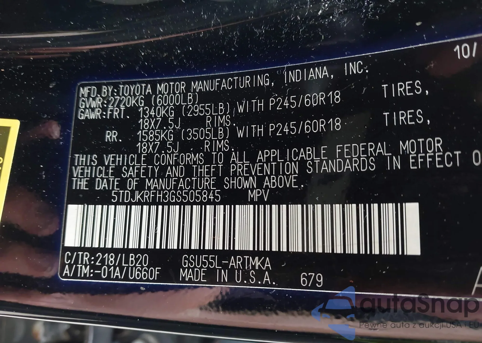 • VIN 5TDJKRFH3GS505845