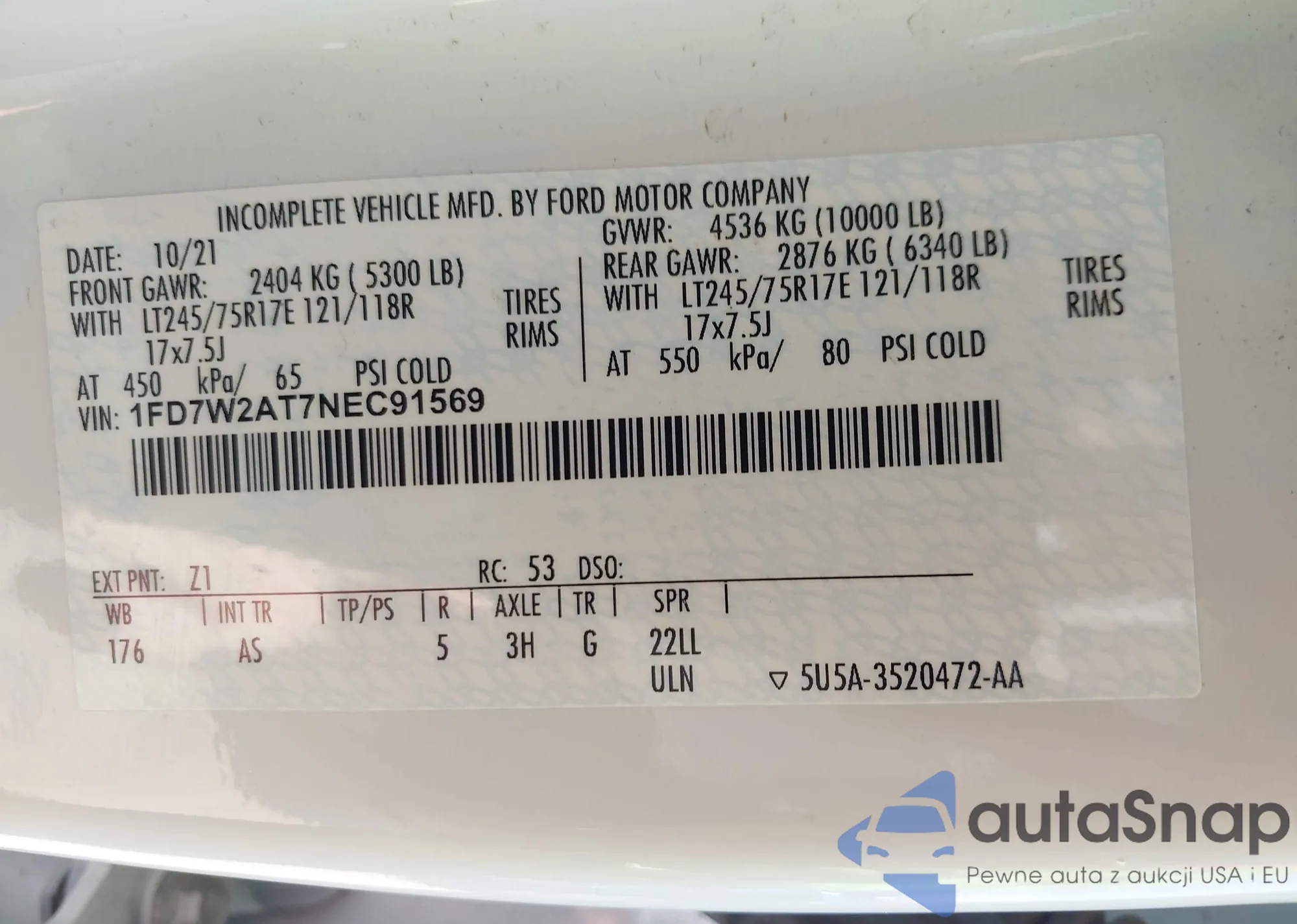 LOT: 42690910 VIN: 1FD7W2AT7NEC91569