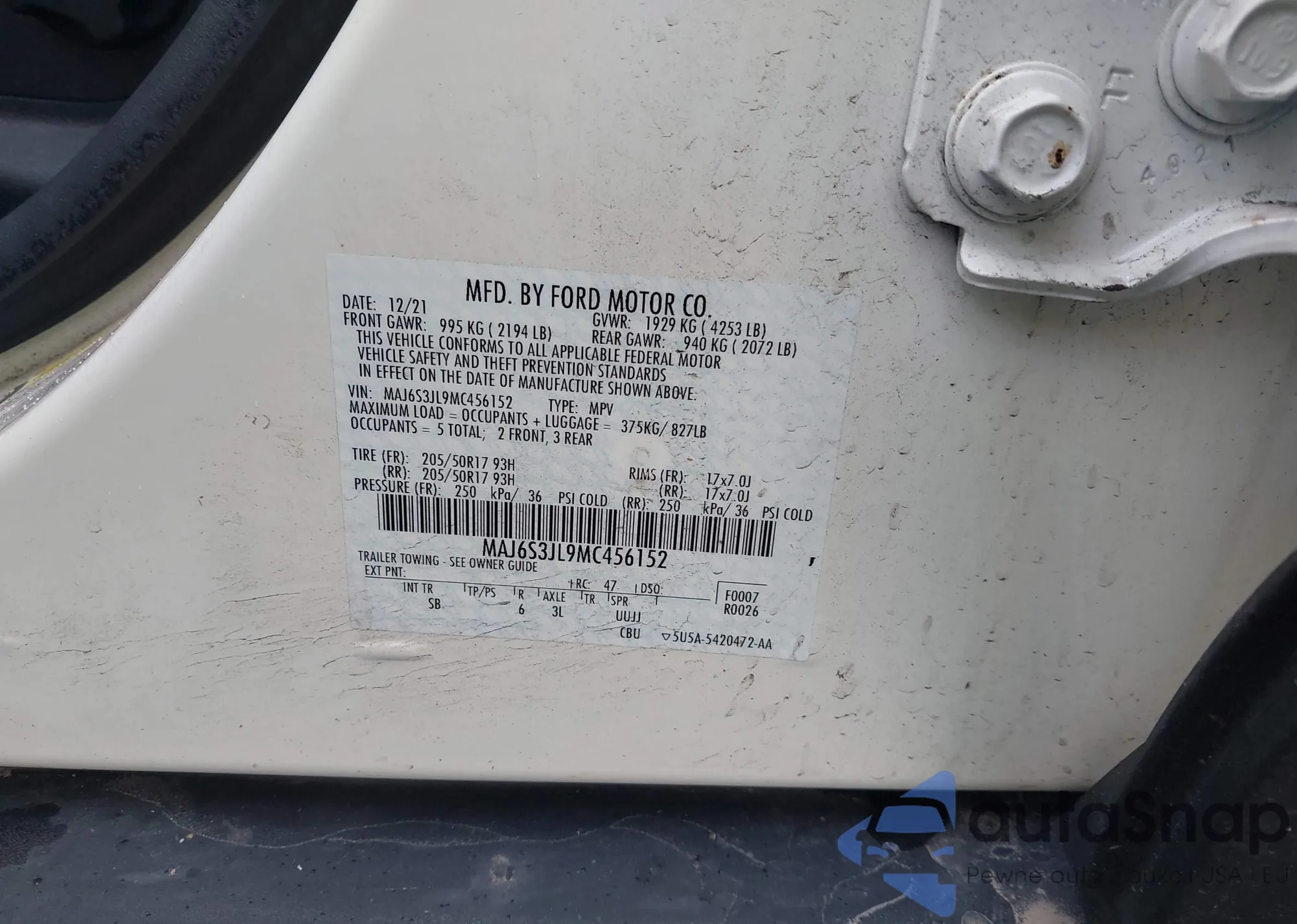 • VIN 5TDJRKEC3MS057627