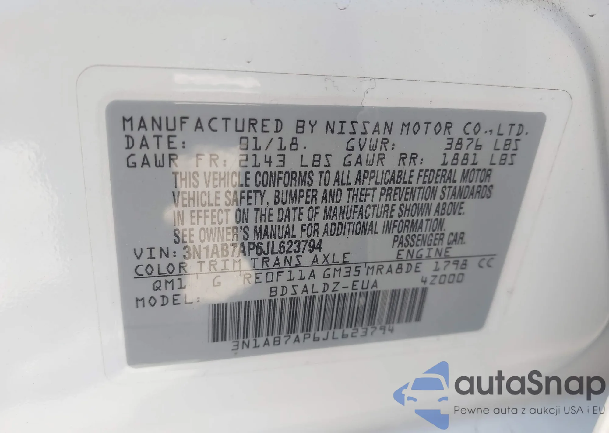 • VIN 3N1AB7AP6JL623794
