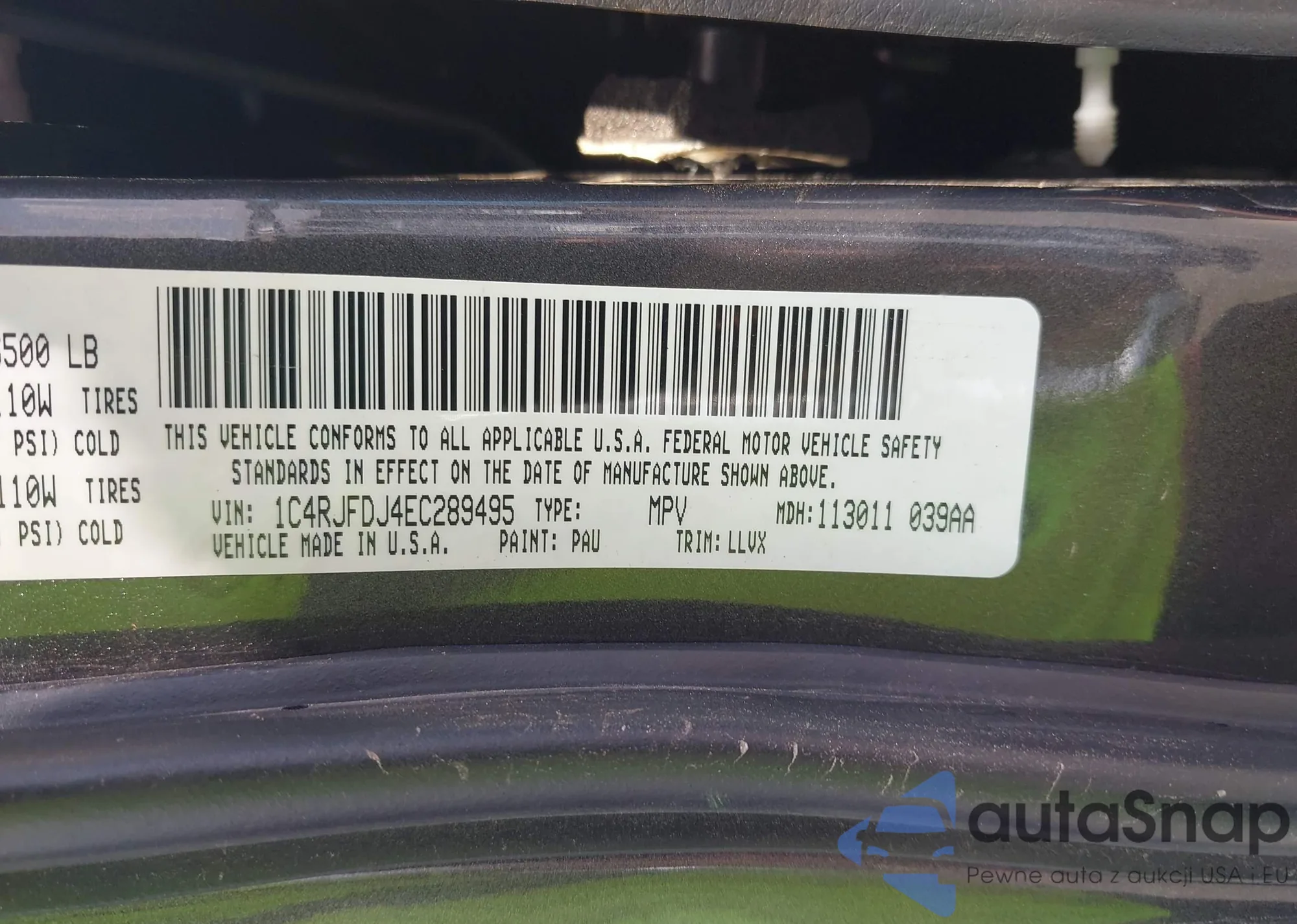 • VIN 1C4RJFDJ4EC289495