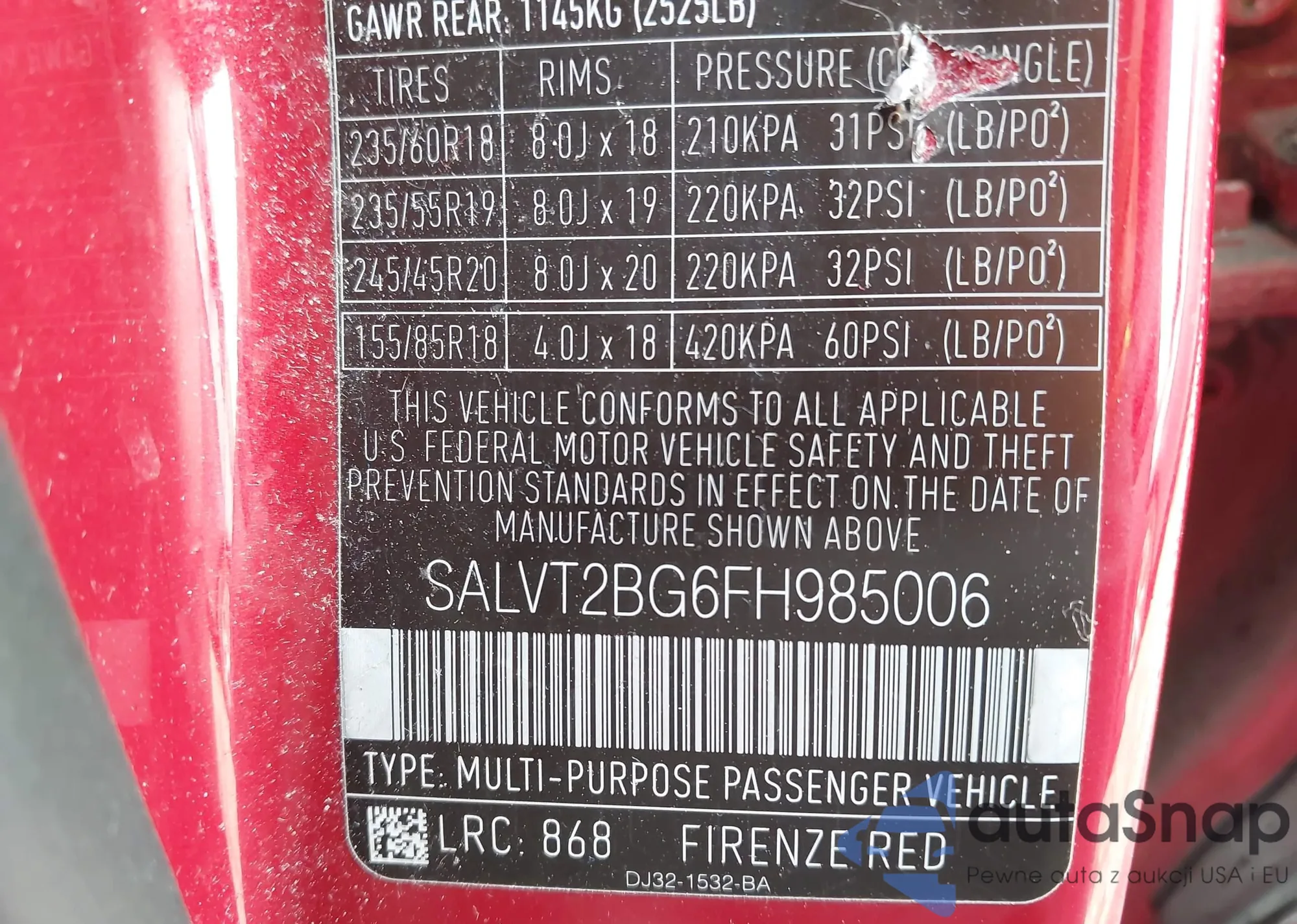 • VIN SALVT2BG6FH985006