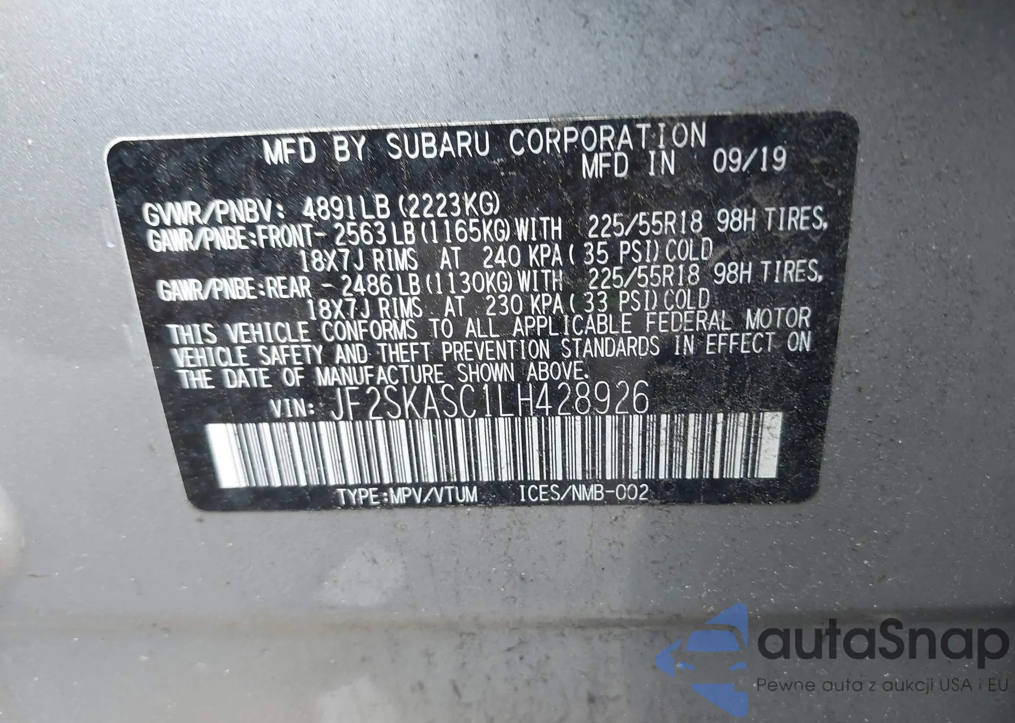 LOT: 42759772 VIN: NMTKHMBX1JR049465