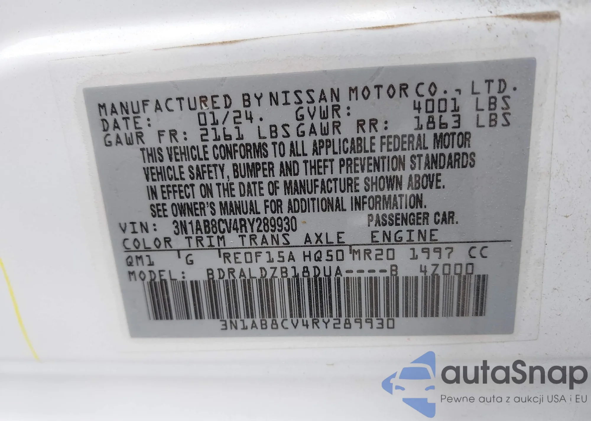 • VIN 3N1AB8CV4RY289930