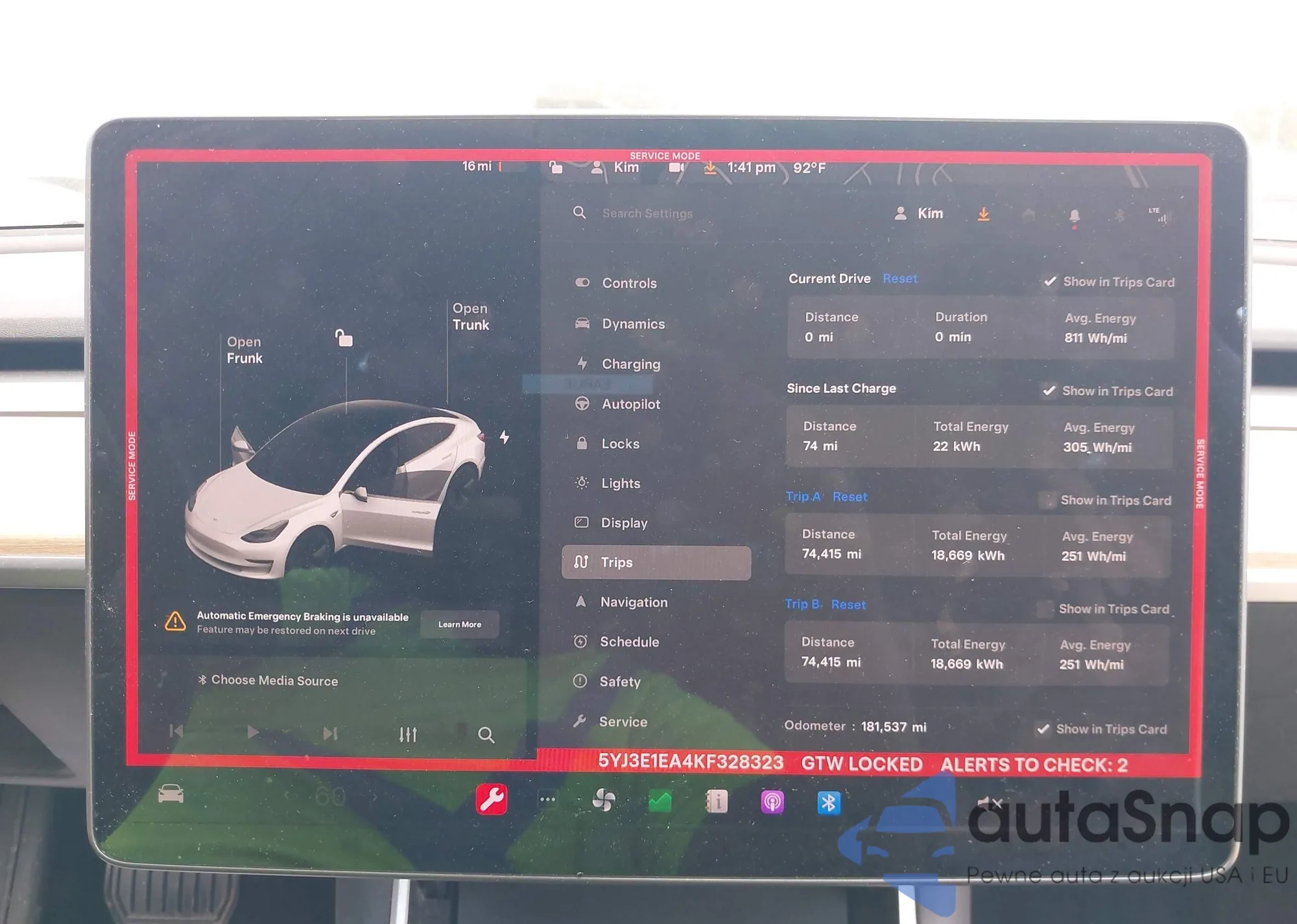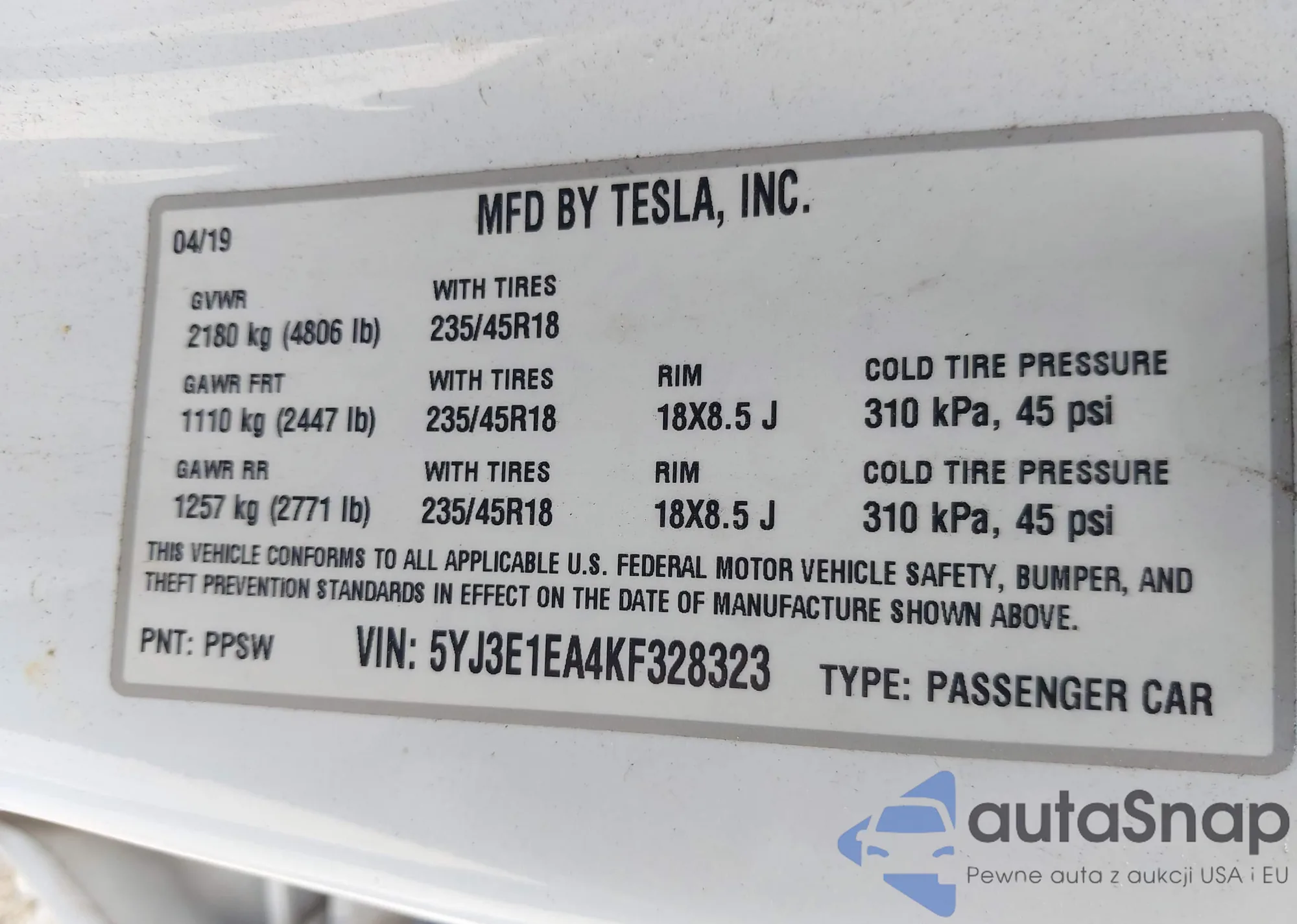 • VIN 5YJ3E1EA4KF328323