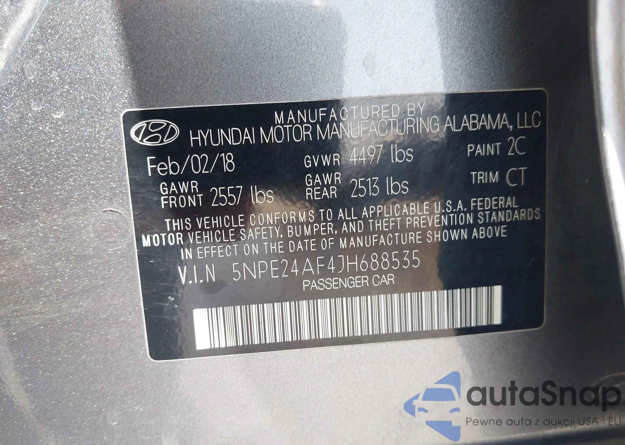 • VIN 5NPE24AF4JH688535