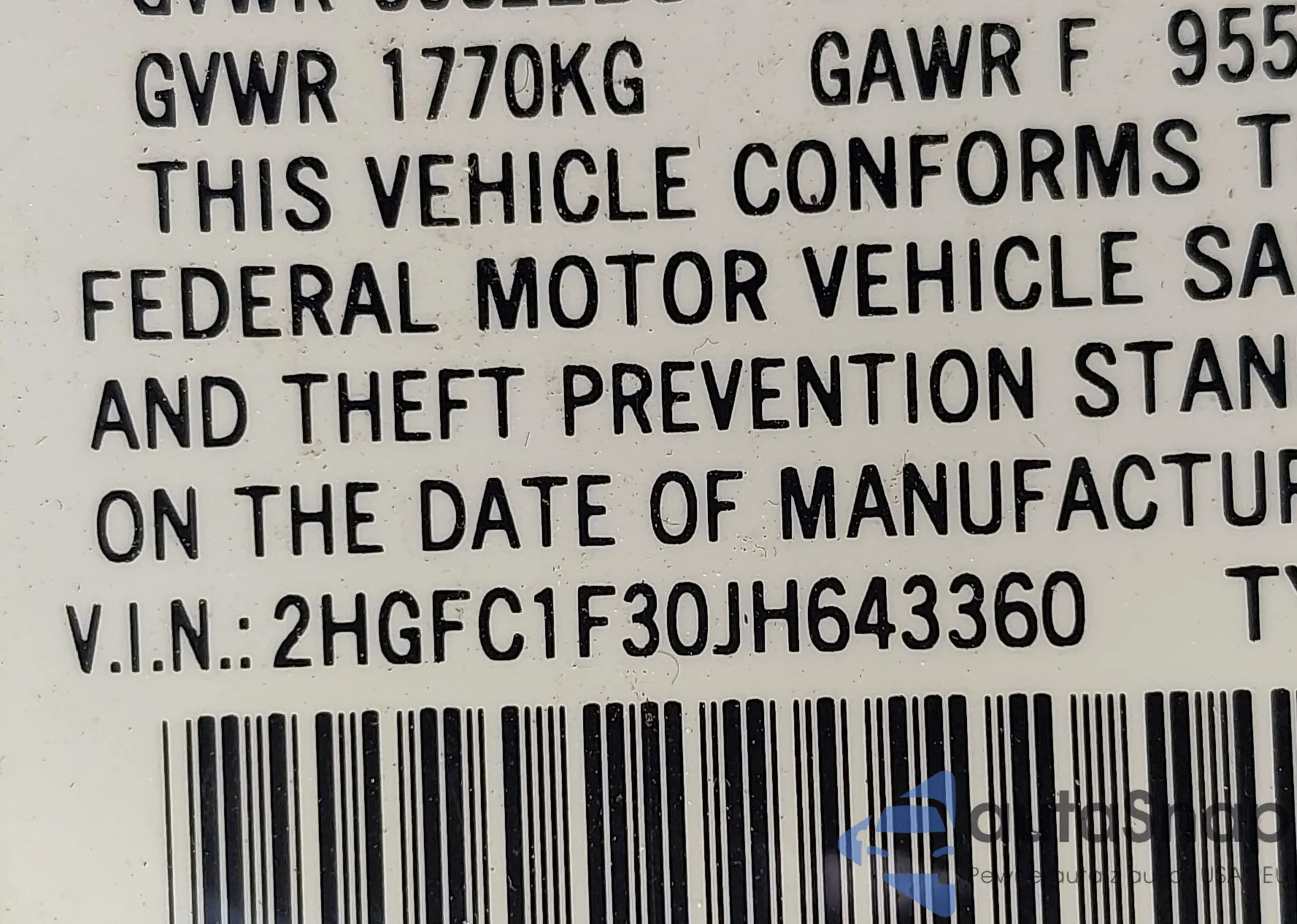 • VIN 1HGCV1F43MA011851
