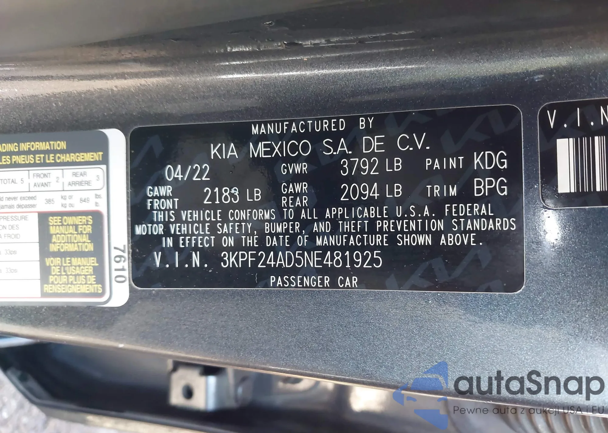 • VIN 3KPF24AD5NE481925