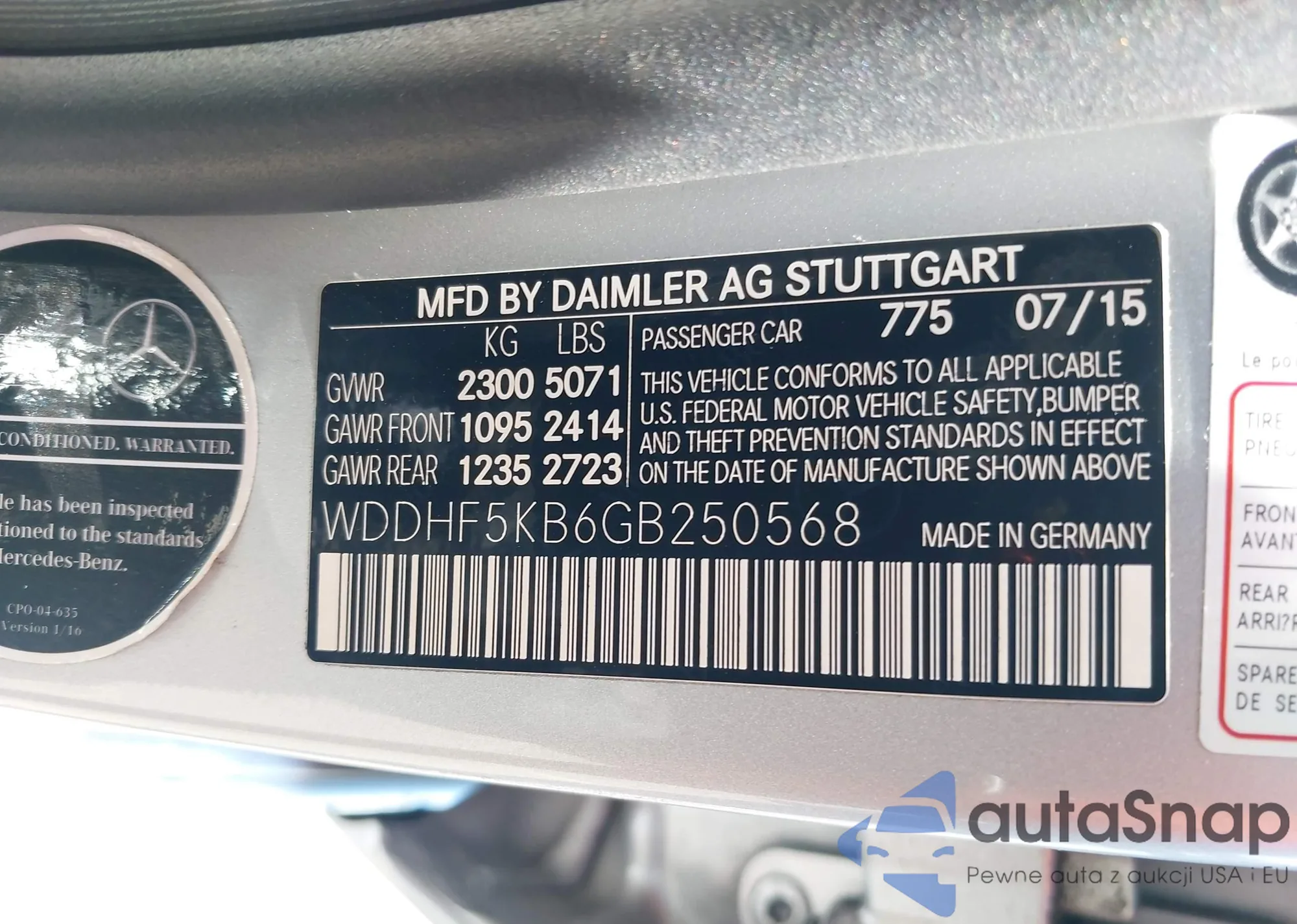 • VIN WDDHF5KB6GB250568