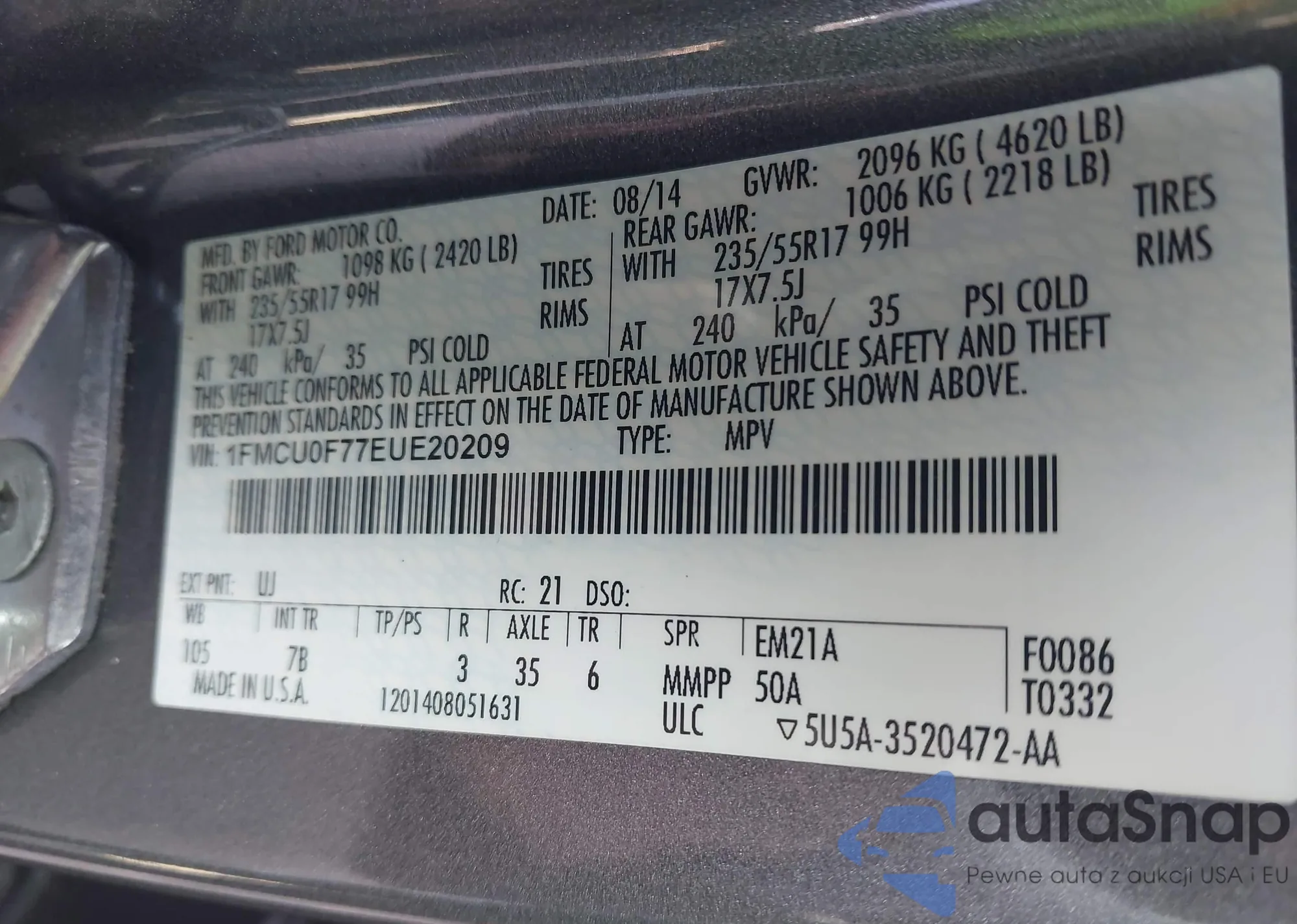 • VIN 1FMCU0F77EUE20209