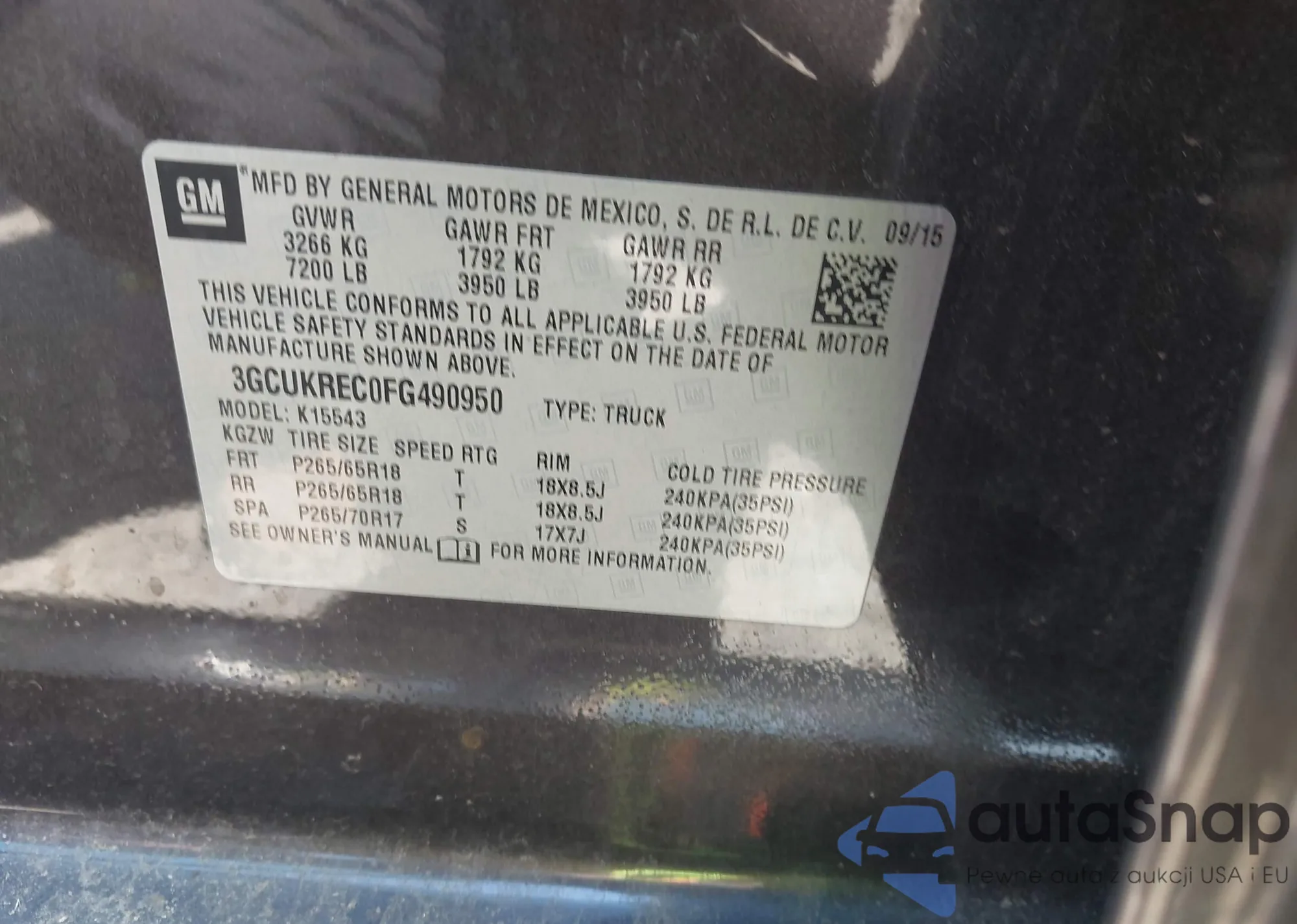 • VIN 3GCUKREC0FG490950