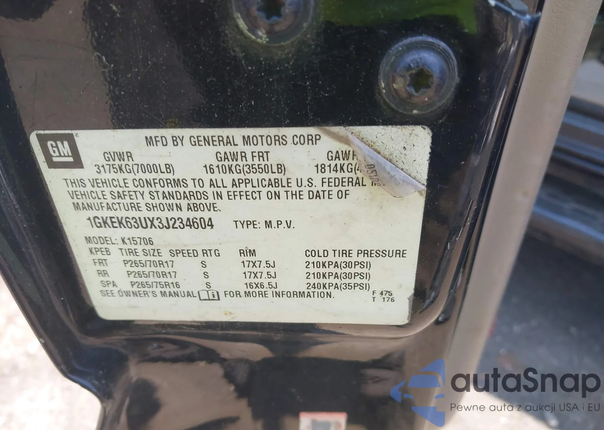 • VIN 1GKEK63UX3J234604
